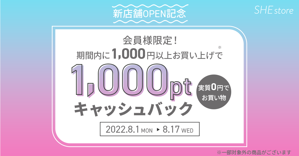 ・期間内に1000円以上お買い上げで会員限定1000ptキャッシュバック!