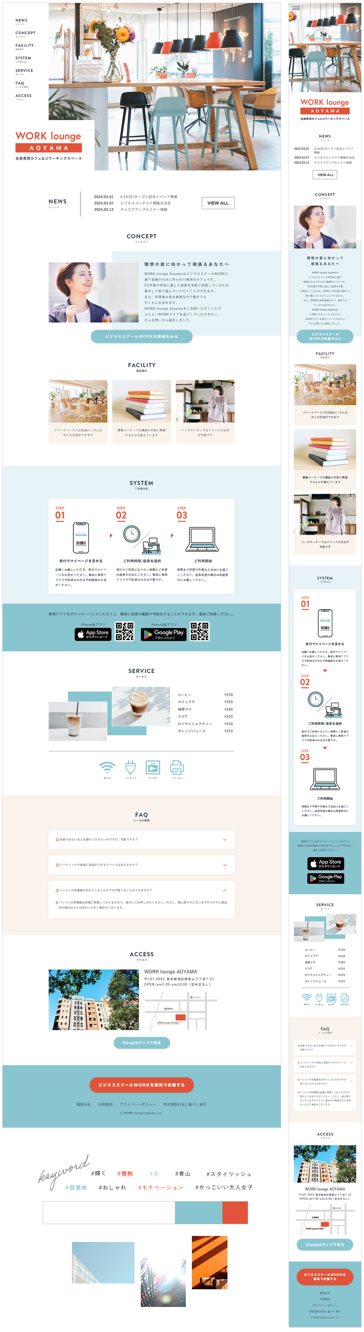 会員様限定のカフェ&コワーキングスペースWORK lounge Aoyamaをオープンするにあたっての認知拡大と新規会員を増やす為のwebサイト制作。
