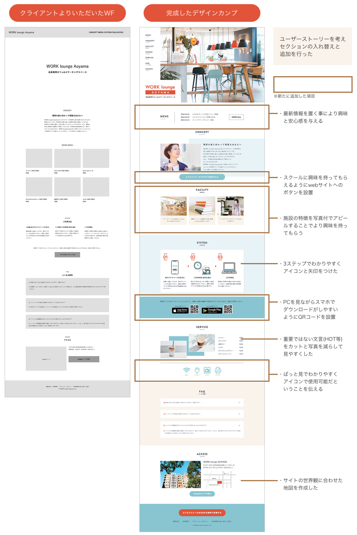 ワイヤーフレームとデザインカンプの比較