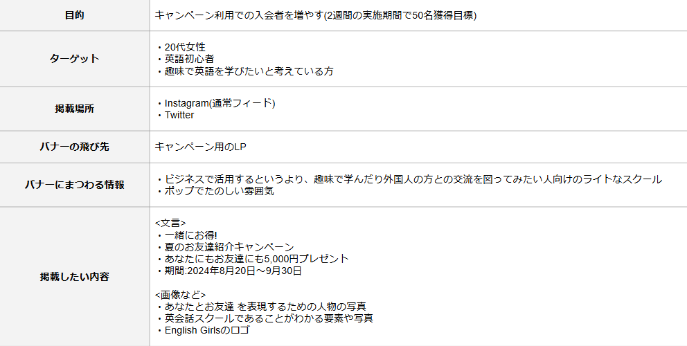 【課題】キャンペーンバナー(X/Instagram)