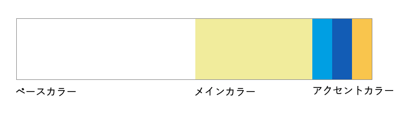 ・黄色の補色関係にある青系の色味と類似色のオレンジをアクセントカラーとして用いて、強調したい部分に使用致しました。