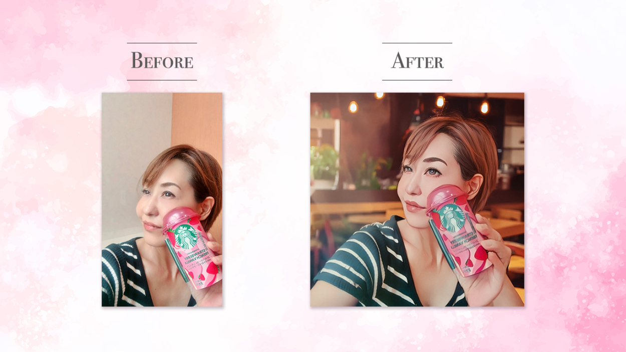 - おしゃれな飲み物を手にているので、背景も合わせてカフェに変更させました。