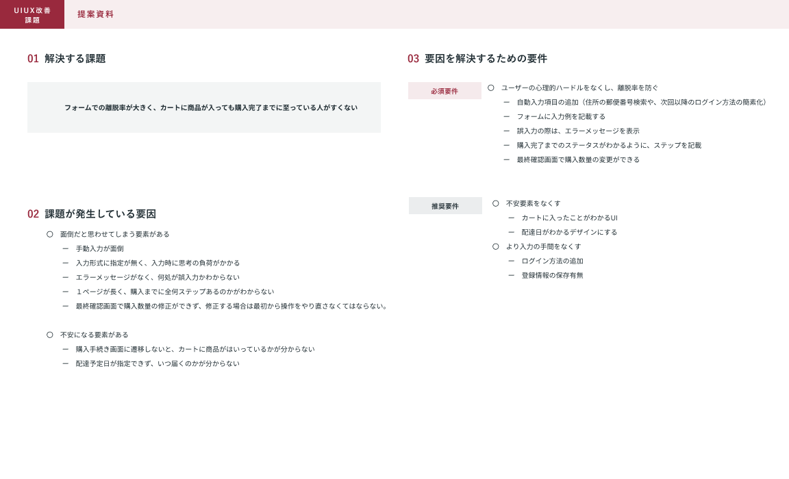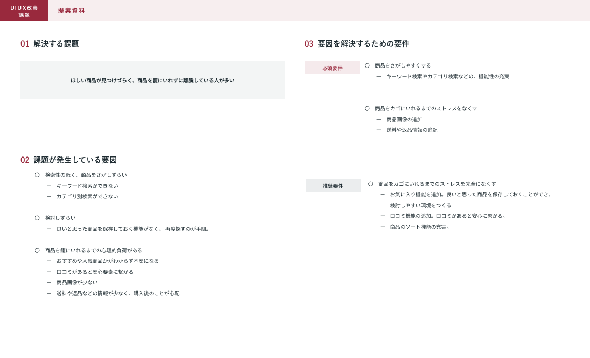 課題2 欲しい商品が見つけづらく、商品をかごに入れずに離脱している人が多い
