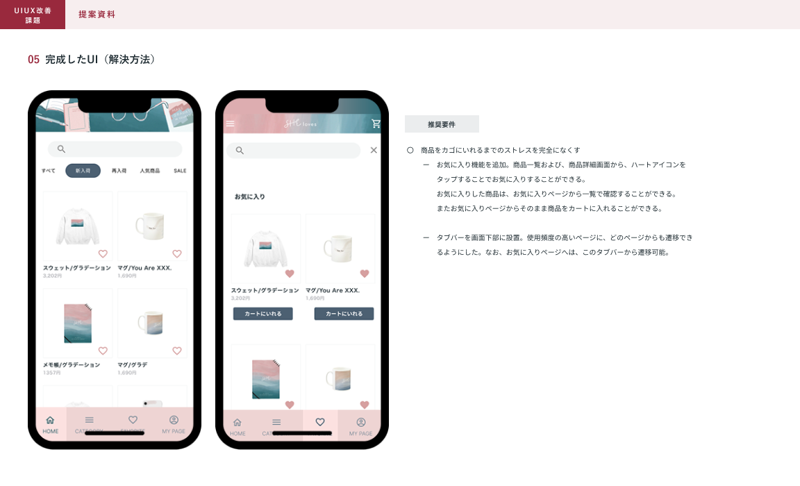 SHElikes MULTI CREATOR PROJECTにて、UI/UX改善提案課題に取り組みました。Figmaを使用したデザインカンプ、クライアントの課題に対しての改善提案資料を作成しました。