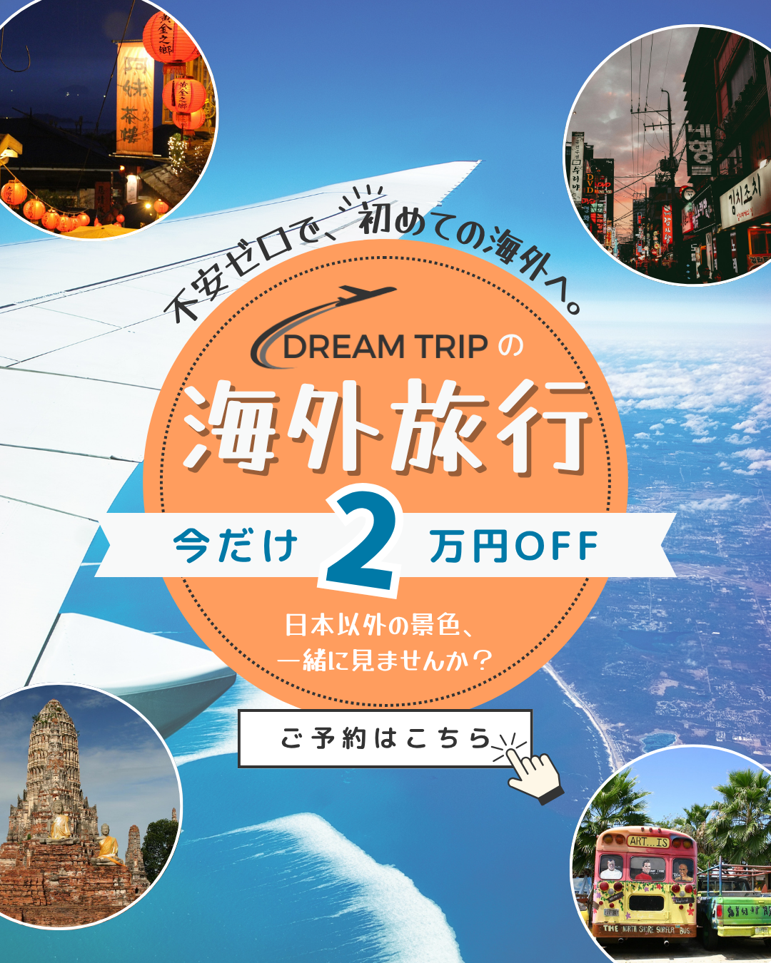 予約ページから期間限定で予約された方のみ、ツアーにかかる費用の総額から「2万円OFF」キャンペーンを実施