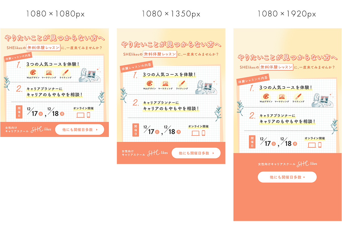 キャンペーンページ誘導目的のバナー広告の制作。 Instagram、FaceBookで配信。