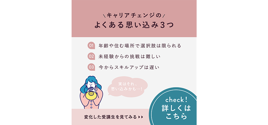 - 時間に限りのある働く女性でも興味を持って見てもらえるように、余白を十分にとりシンプルなあしらいを使用することで視認性が高くなるようにしました。