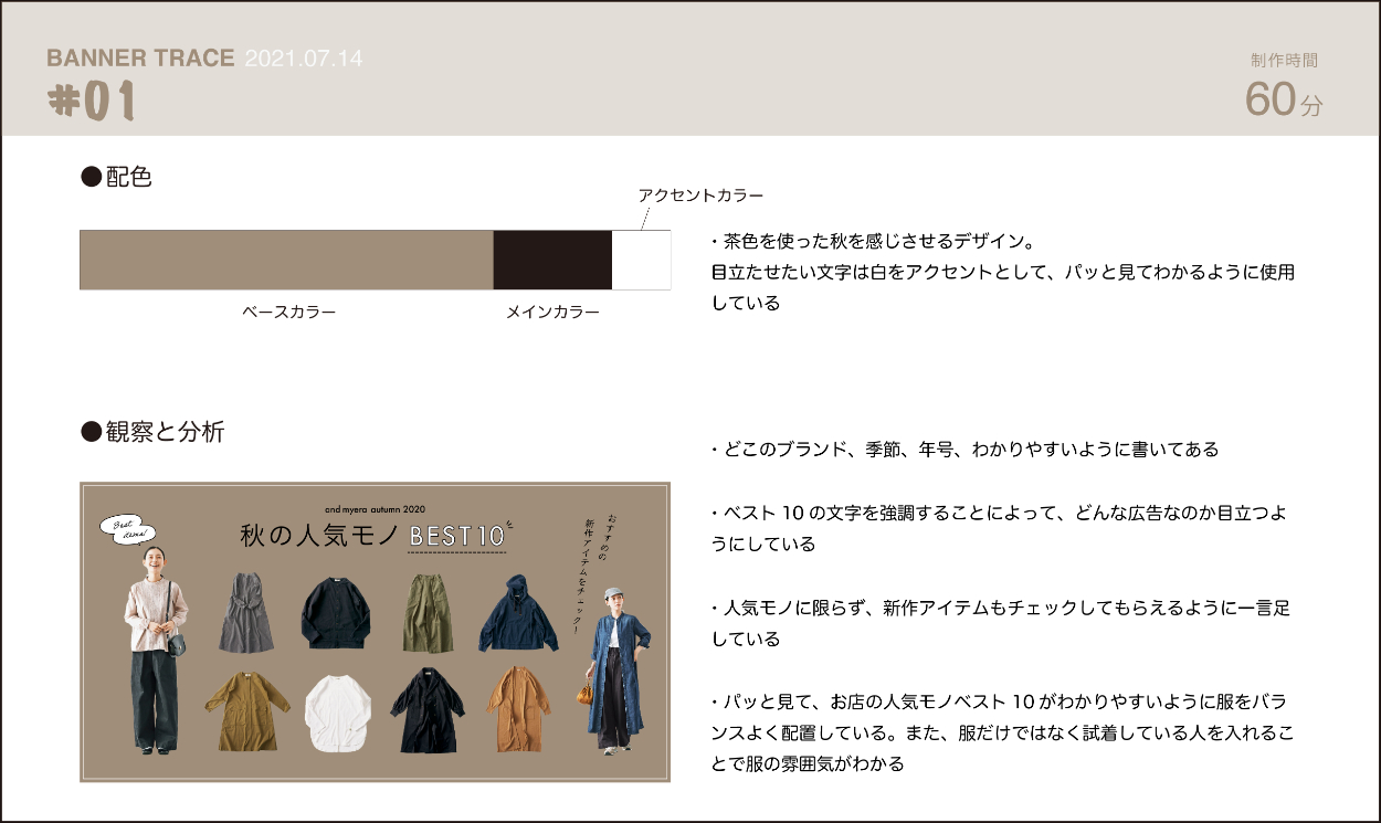 SHElikes MULTI CREATOR COURSEの課題。バナートレースに取り組み、バナーの目的・ターゲット・配色・観察と分析の結果をまとめました。