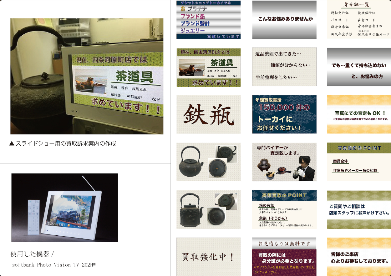 2017年10月頃から本格的に骨董商材に力を入れ始めるも持ち込み件数が少なかったためスライドショーを作成しました。