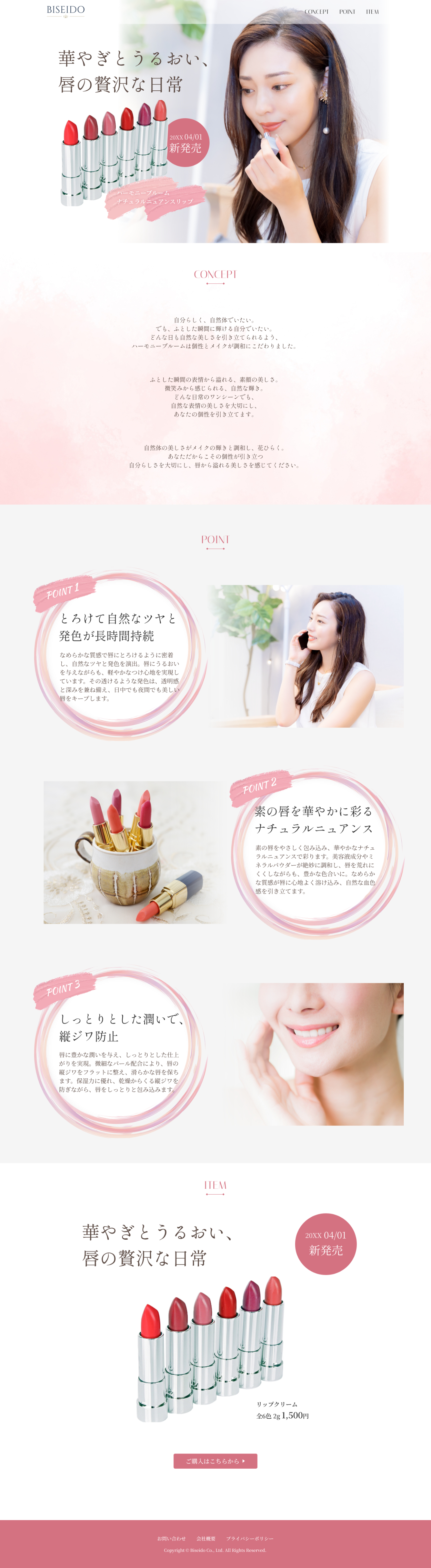 【課題演習】デザインカンプ Mei.n Webデザイナー(入門) 【制作物】【課題内容】・20XX年4月1日から発売される新作リップのSNS広告・キャッチコピーは”華やぎとうるおい、唇の贅沢な日常” ・20代女性の気持ちが明るくなるような華やかなカラーリングを希望。