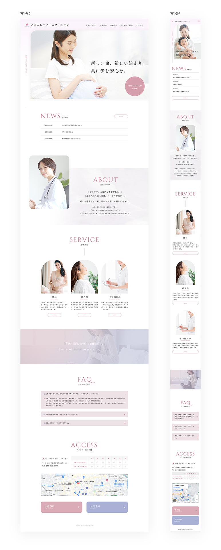 キャリアスクールの実技試験にて、架空の産婦人科医院のサイトを制作いたしました。 ■制作時期:2023年9月 ■制作時間:約40時間 ■担当領域:全て ■使用ツール:Illustrator / Photoshop / Visual Studio Code