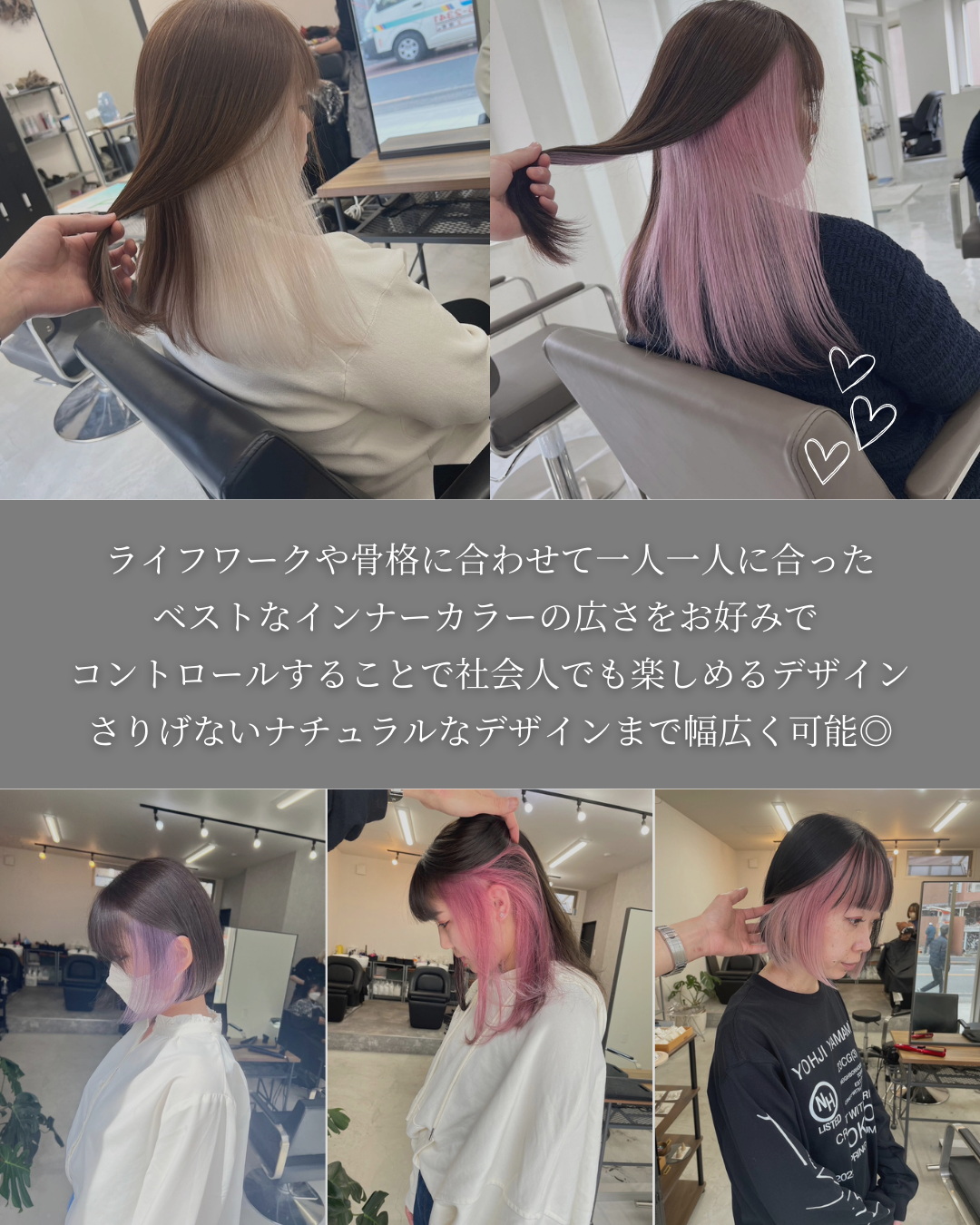 ・インナーカラーの投稿だと1番分かるための目線誘導を意識し作成をしております。