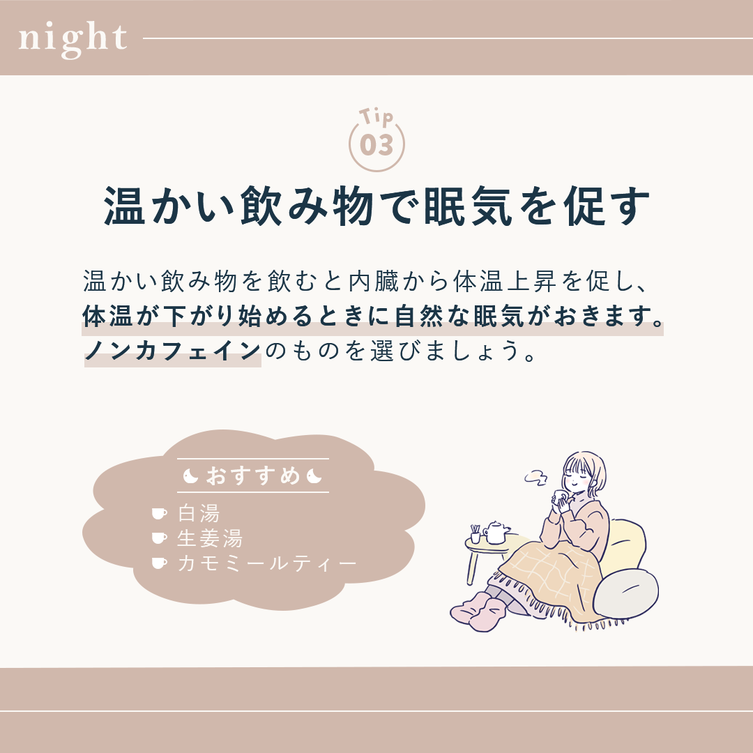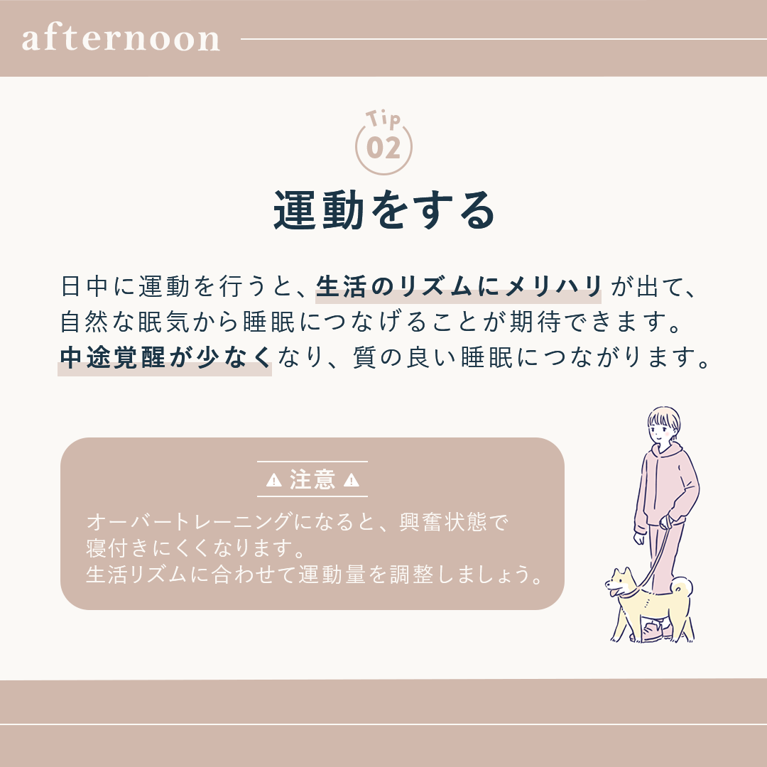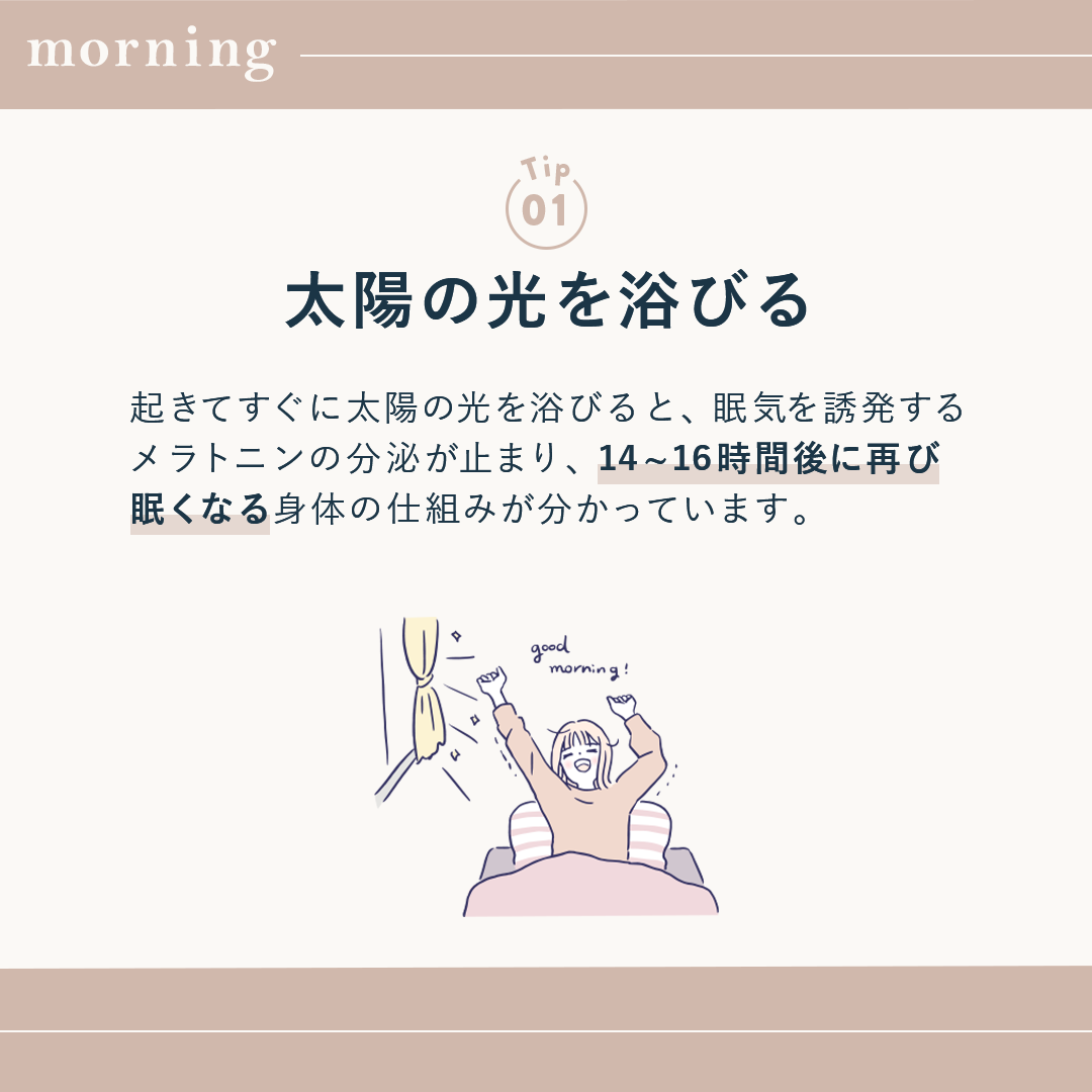 心地よい睡眠をとるためにやるべきことを提示し、「今日から試してみようみよう!」と思わせる