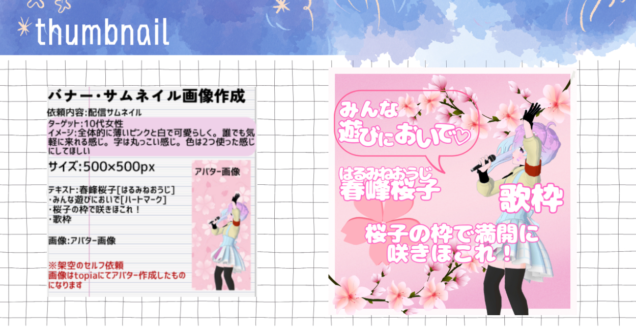 自分が普段使用する際に作っているタイプの配信サムネイルになります。