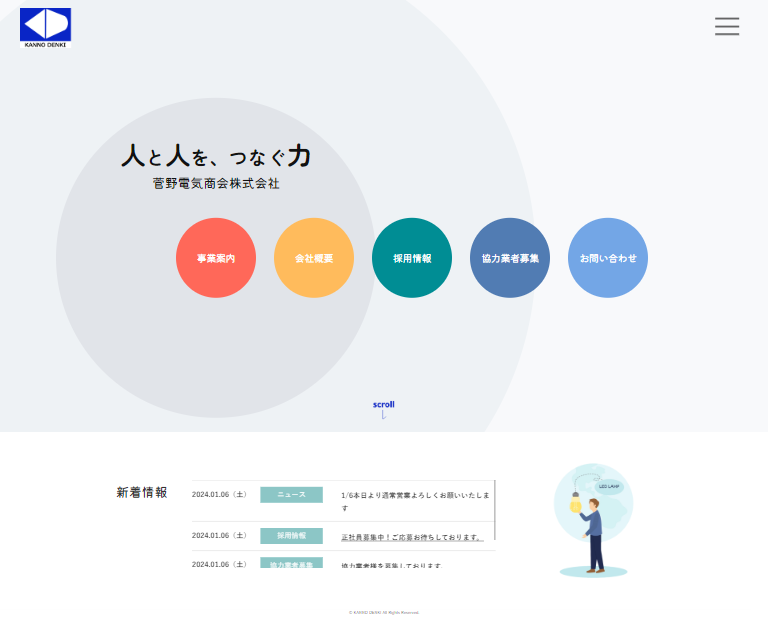 菅野電気株式会社様のコーポレートサイトのデザインを担当させていただきました