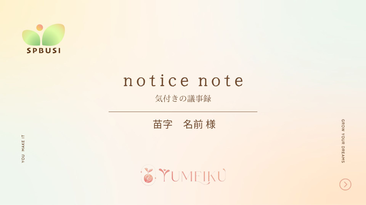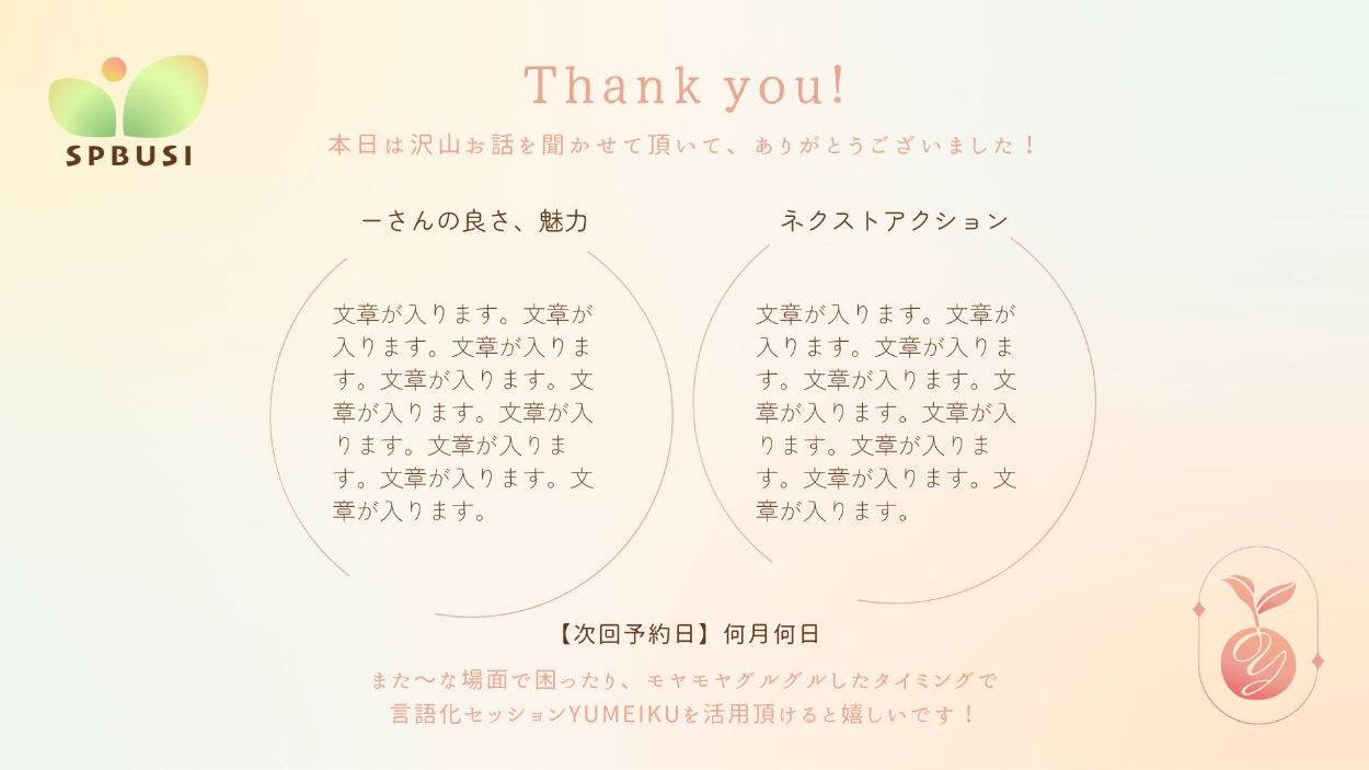 YUMEIKU様のサービスで使用する女性のオンラインスクールSHElikesのコミュニティサポ隊チーム(スプビジ)のメンバー限定でお渡しする議事録のスライドテンプレートを作成させていただきました。