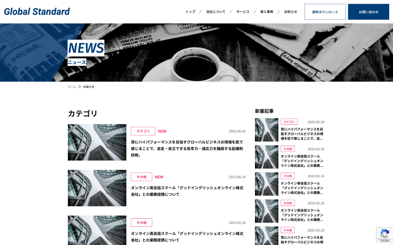 その他に「記事の一覧ページ」「お問い合わせページ」「資料ダウンロードページ」があります。