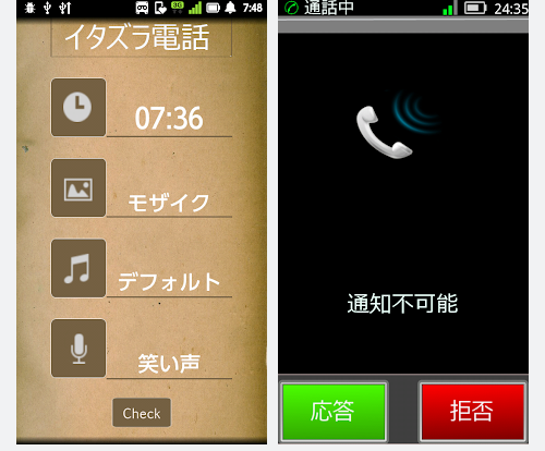 タイマー機能を使い、誰かから電話がかかってきたかのように見せるジョークアプリ。