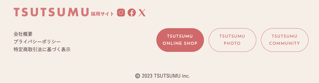 フッターでは各事業を顧客目線でも見ていただけるように、リンクをボタンで並べて配置し、より求職者が企業について理解が深められるようにしました。