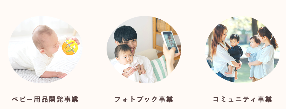 ベースカラーに肌色を使うことで、人とのふれ合いや生まれたてのあかちゃんの肌を意識し事業を表現し、赤ちゃんのおもちゃで使われることが多いパステルカラーで揃えました。