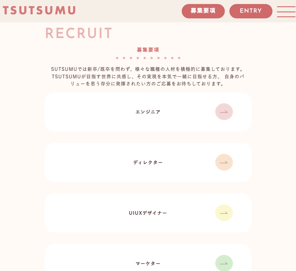 装飾に様々なパステルカラーを使うことで、採用サイトなので男性にも、女性にも偏らないバランスを取りました。