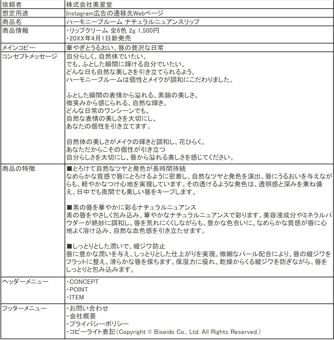 ・商品がリップクリームということでリップは口元を明るくすることや、キャッチコピーの『華やか』『贅沢』から連想されるフォントやカラーリングを使用しました。