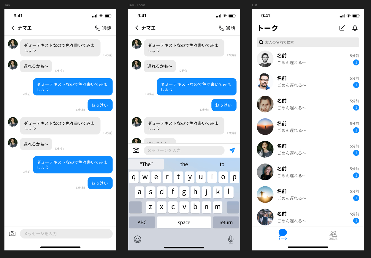 モバイルでのLINEのようなメッセージアプリを想定している架空のプロダクトです。
