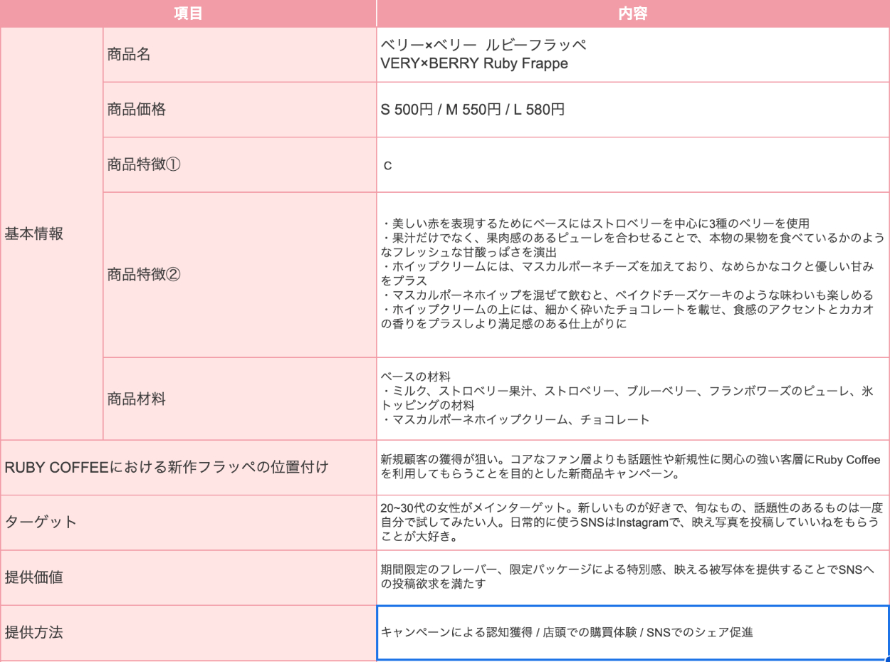 ・フラッペのベースにいちごを使用しているため、味のイメージが膨らむように淡いピンクをベースカラーに設定しました。