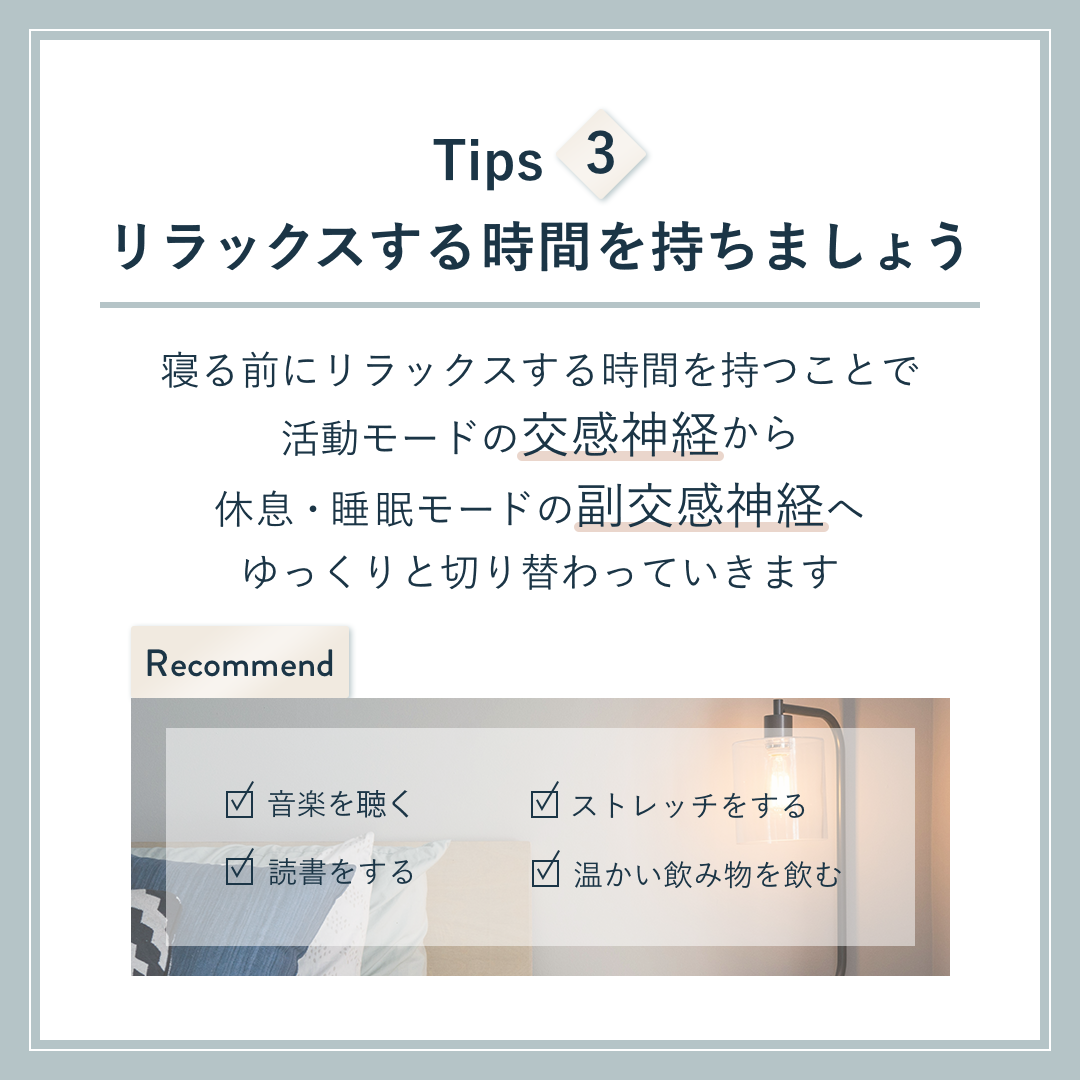 ・「明日のご機嫌は今日のうちから 心地よい睡眠のためにやること 3選」のテーマを選択。