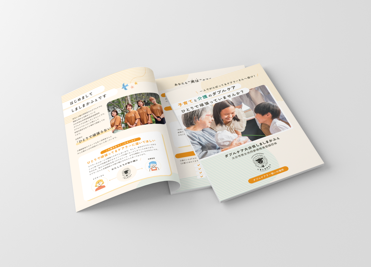 ダブルケアラーへの支援活動をしている『ダブルケア大分県しましまかふぇ』のパンフレット制作(製作時間:2か月)