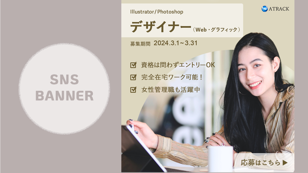 新卒採用というより、中途用の広告だと感じたので、アラサー世代のイメージで少し落ち着いたナチュラルカラーを中心に使用