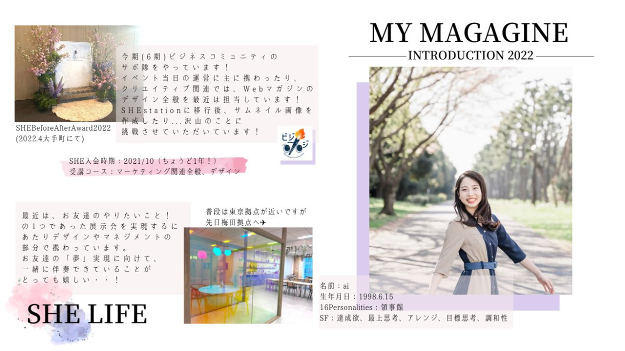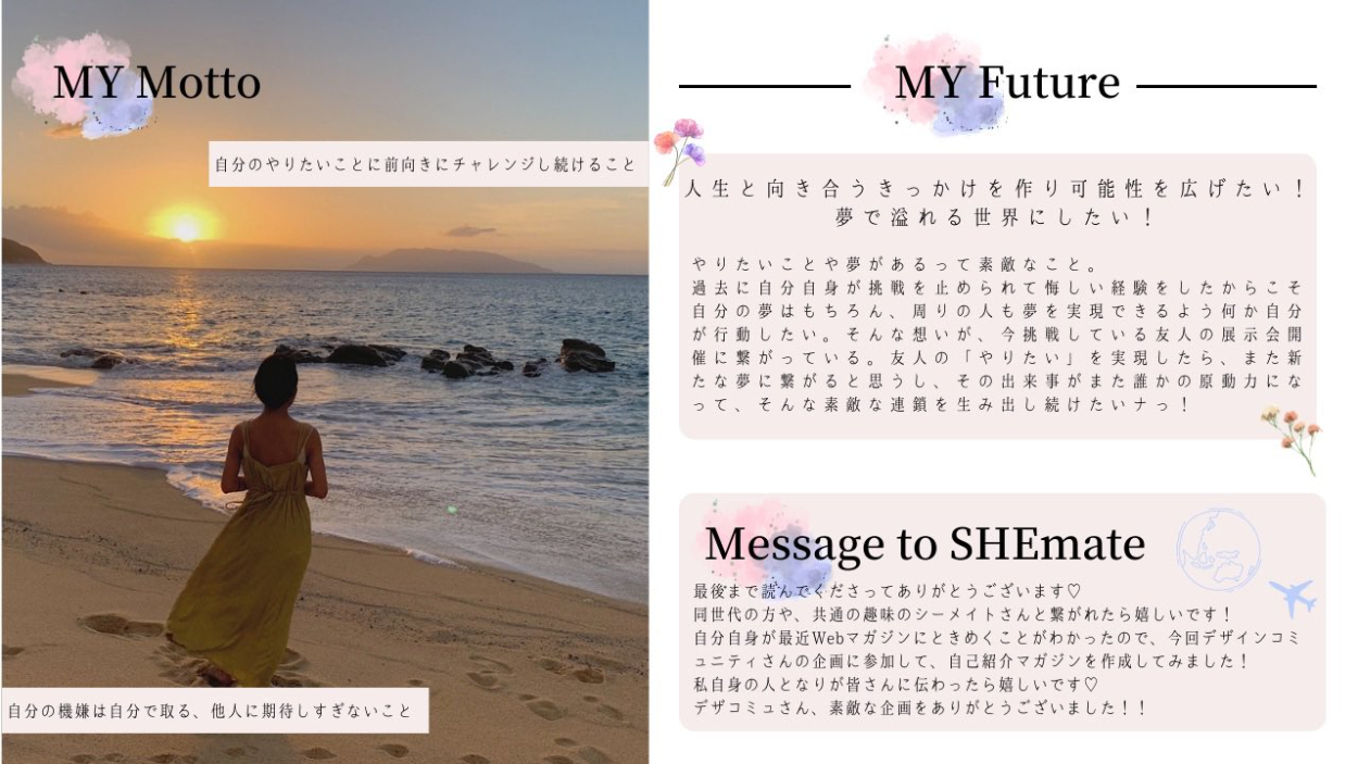 女性のためのキャリアスクールSHElikesのデザインコミュニティー内において、Webマガジンを作成してみようという企画のもと取り組みました。