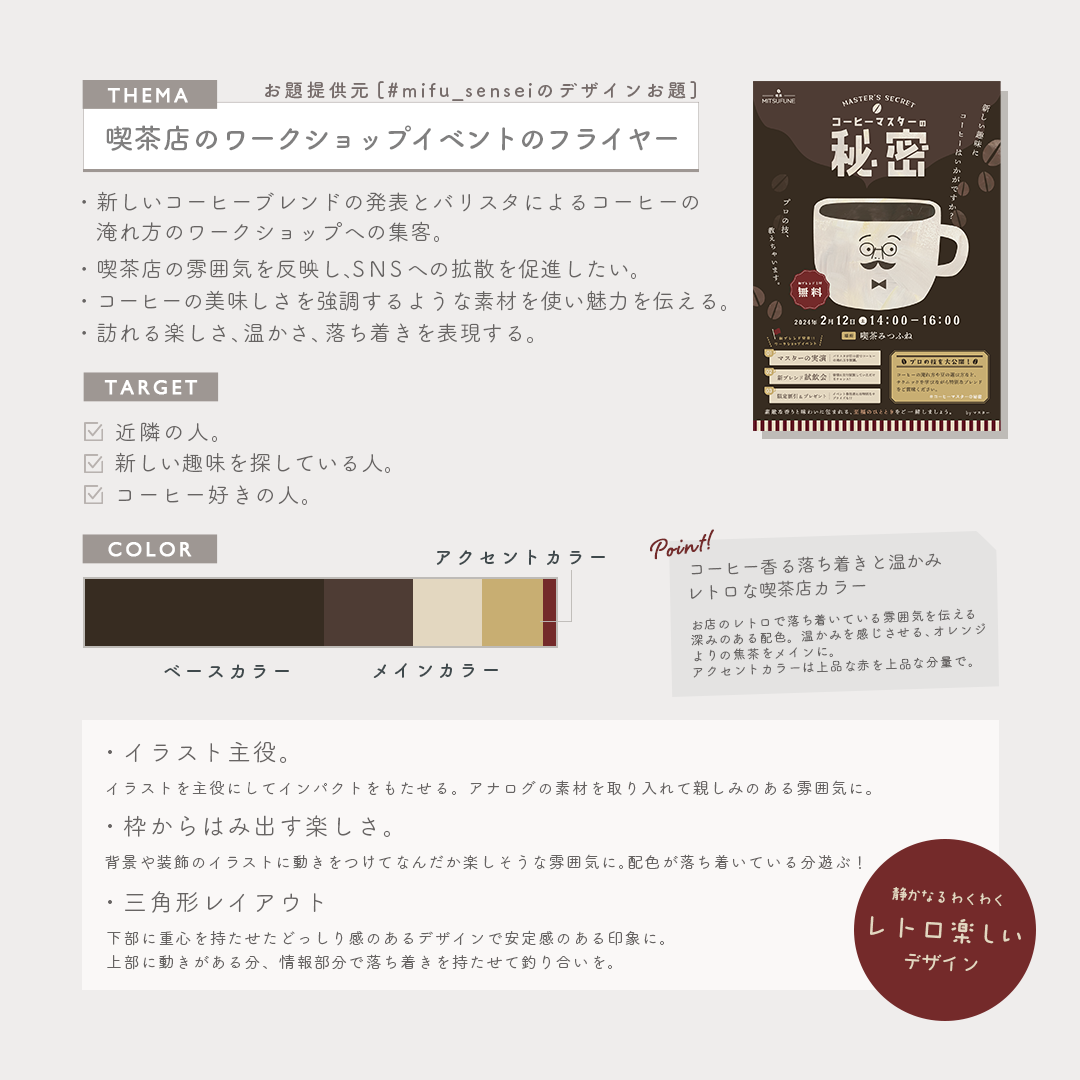【自主制作】喫茶店イベントチラシ KEIKO UEDA デザイナー/イラストレーター OVERVIEW 2024.6.03/制作時間:7時間/制作ツール:illustrator/コンセプト:静かなるワクワクを感じるレトロデザイン YEAR 2024