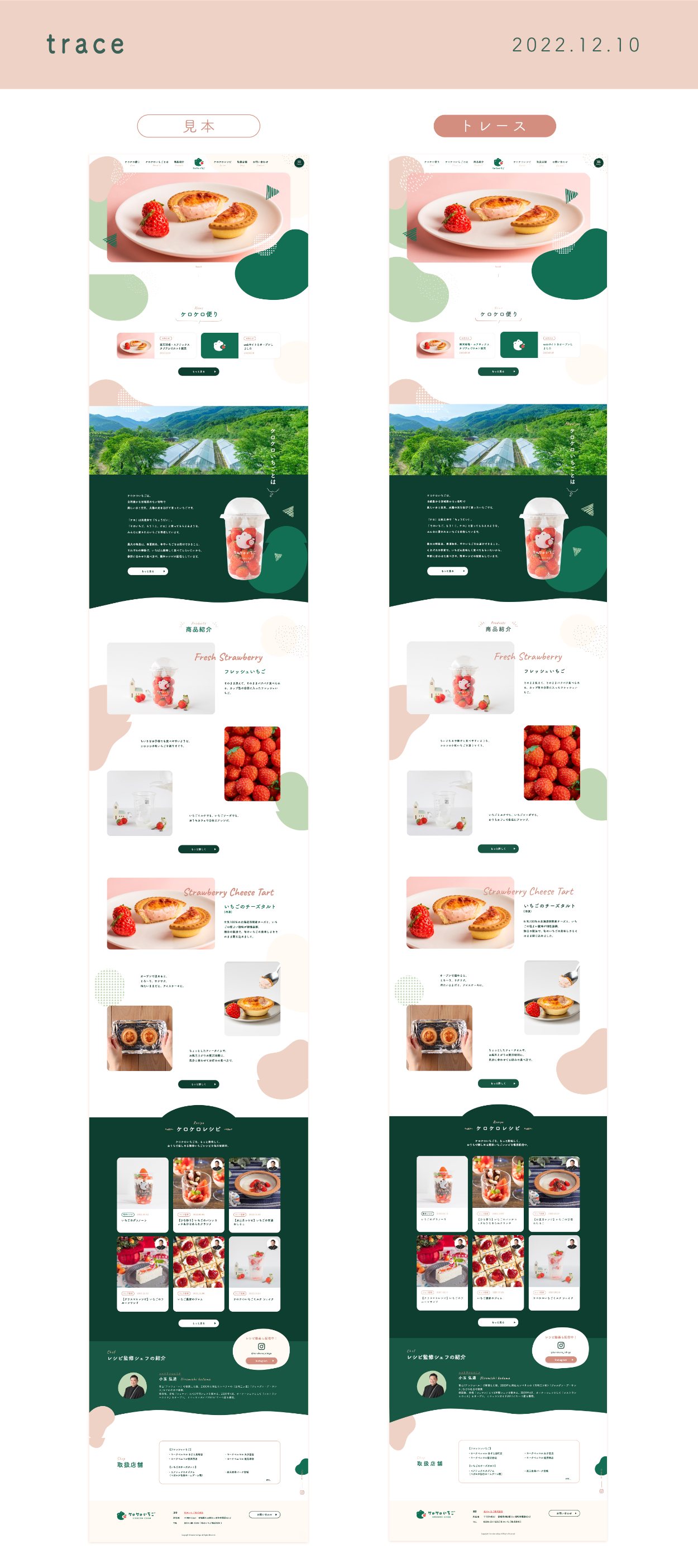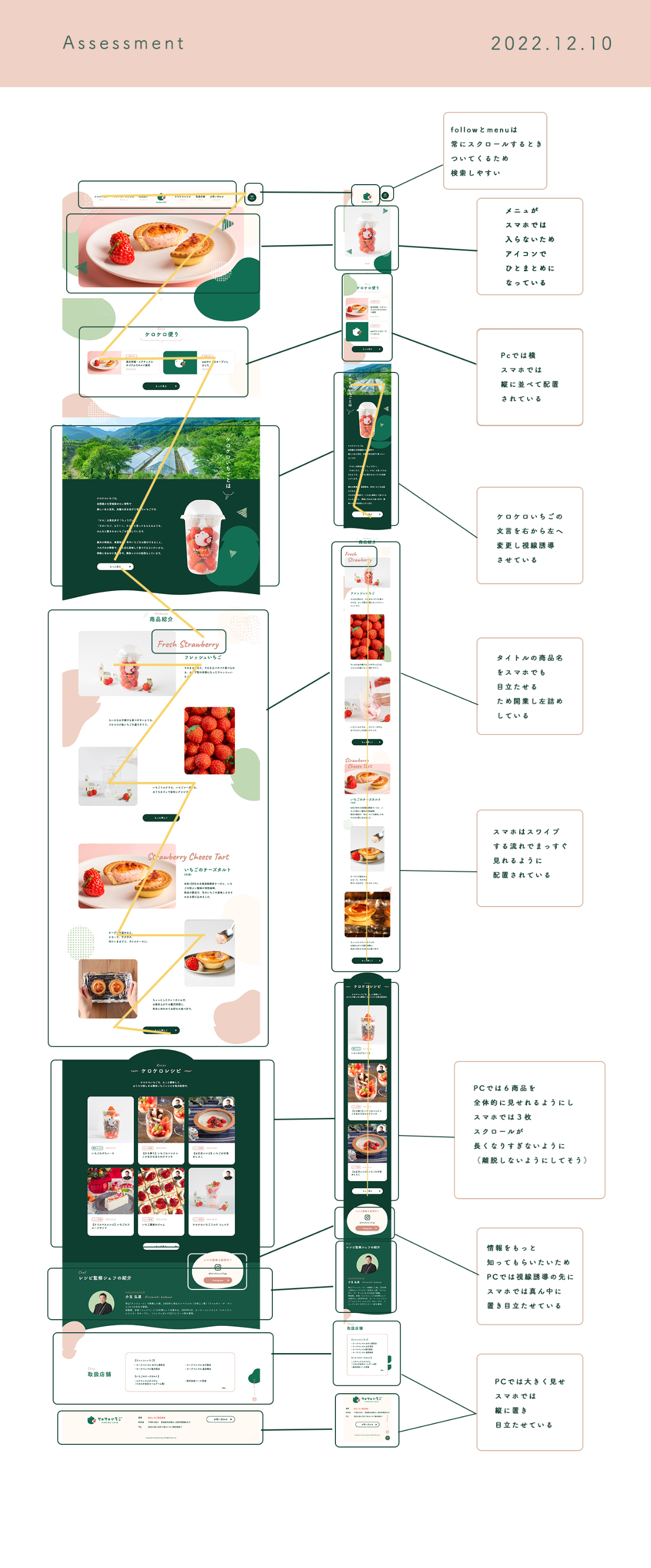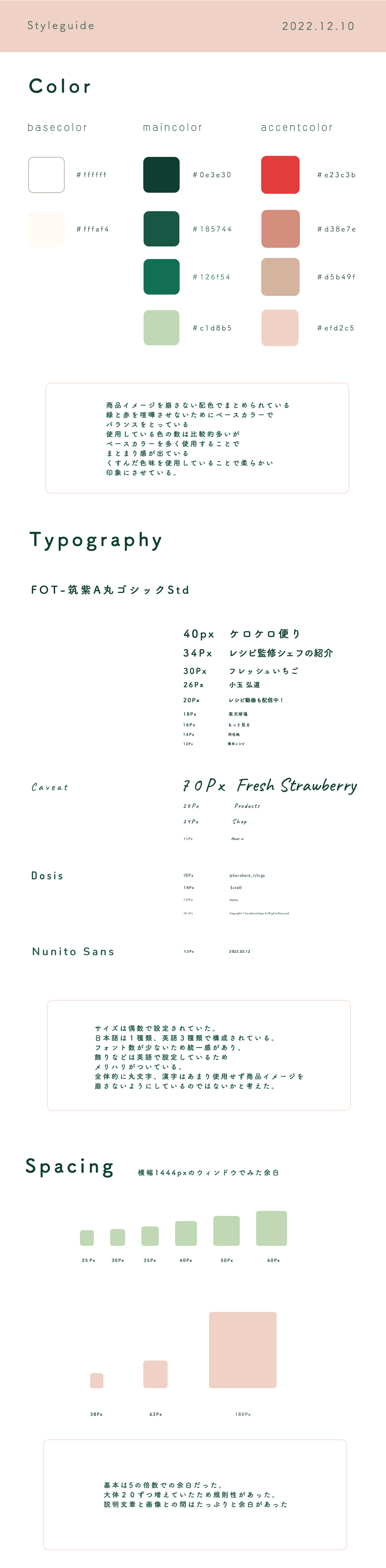 SHElikes マルチクリエイターコース課題でKEROKEROICHIGO(http://kerokeroichigo.com/)NOLPのトレース、スタイルガイド作成、PCとSPの比較分析を行いました。
