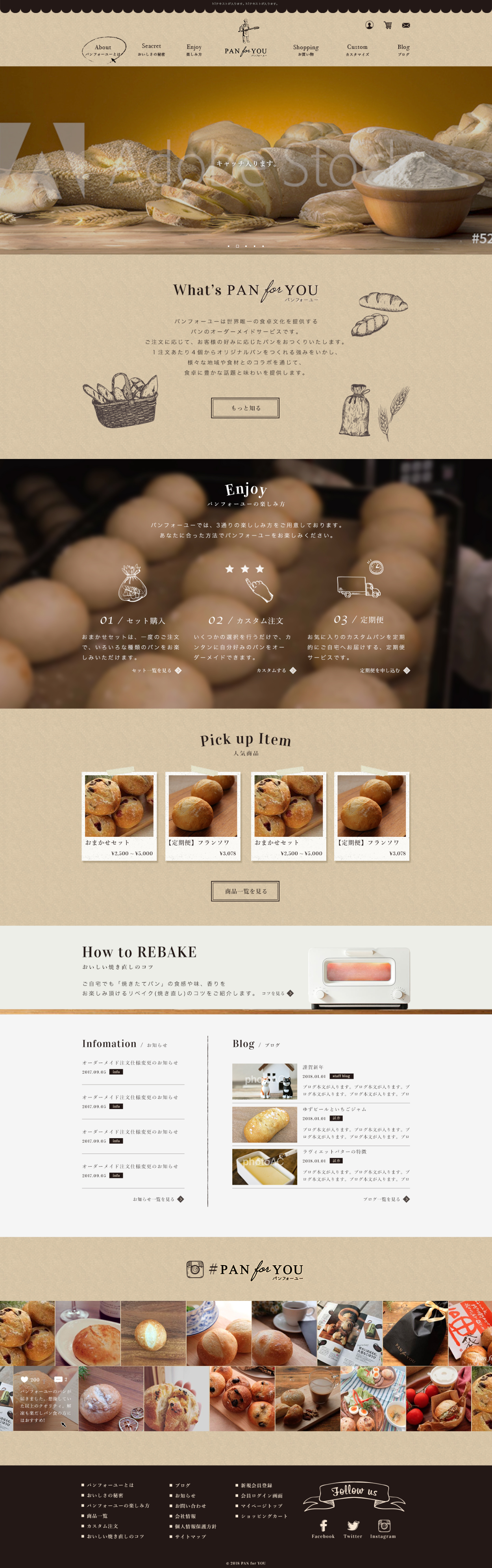 パン通販会社のショップサイト - パンフォーユー様 ショップサイト作品の狙いや目的:ショップサイト リニューアル作品のコンセプトやポイント:小麦のあたたかさを感じられるデザイン制作時間:10時間担当:デザイン