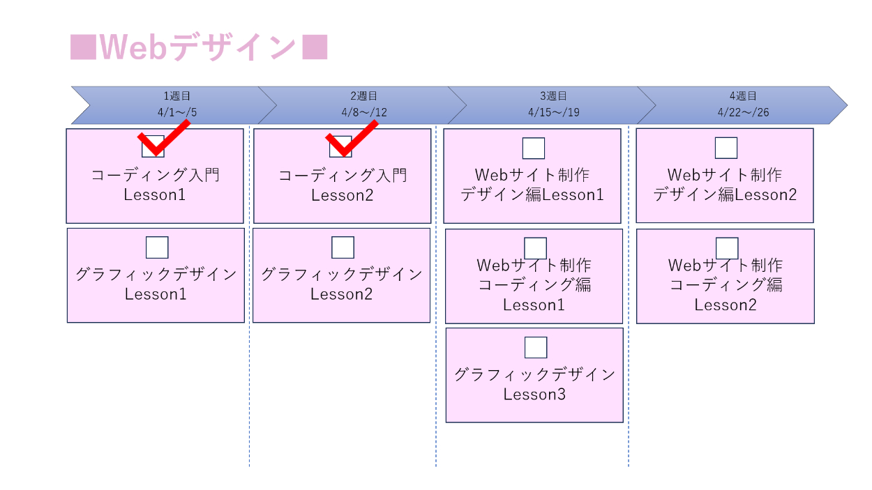 様々なジャンルを勉強していたので、上の見出し部分だけを「Webデザイン」「マー