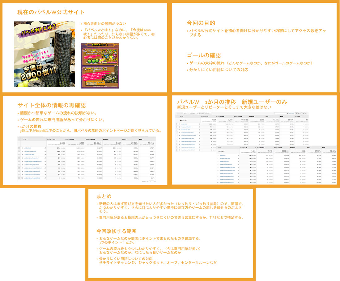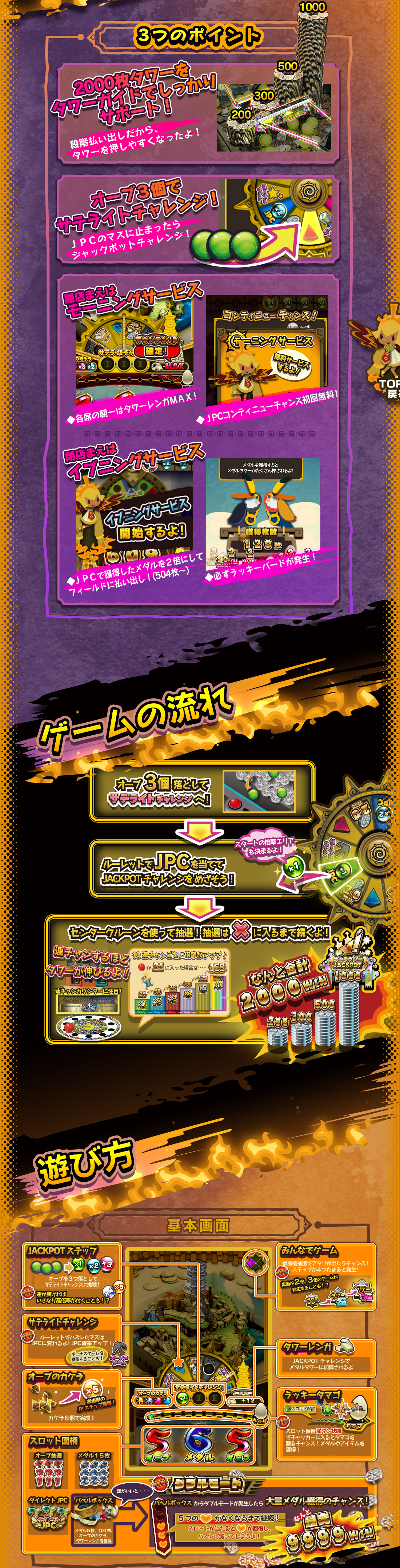 アーケードメダルゲーム「バベルのメダルタワーW!」の公式サイトの初心者向け改修として、コンテンツ案とサイトの改修案、ワイヤーの作成を行いました。