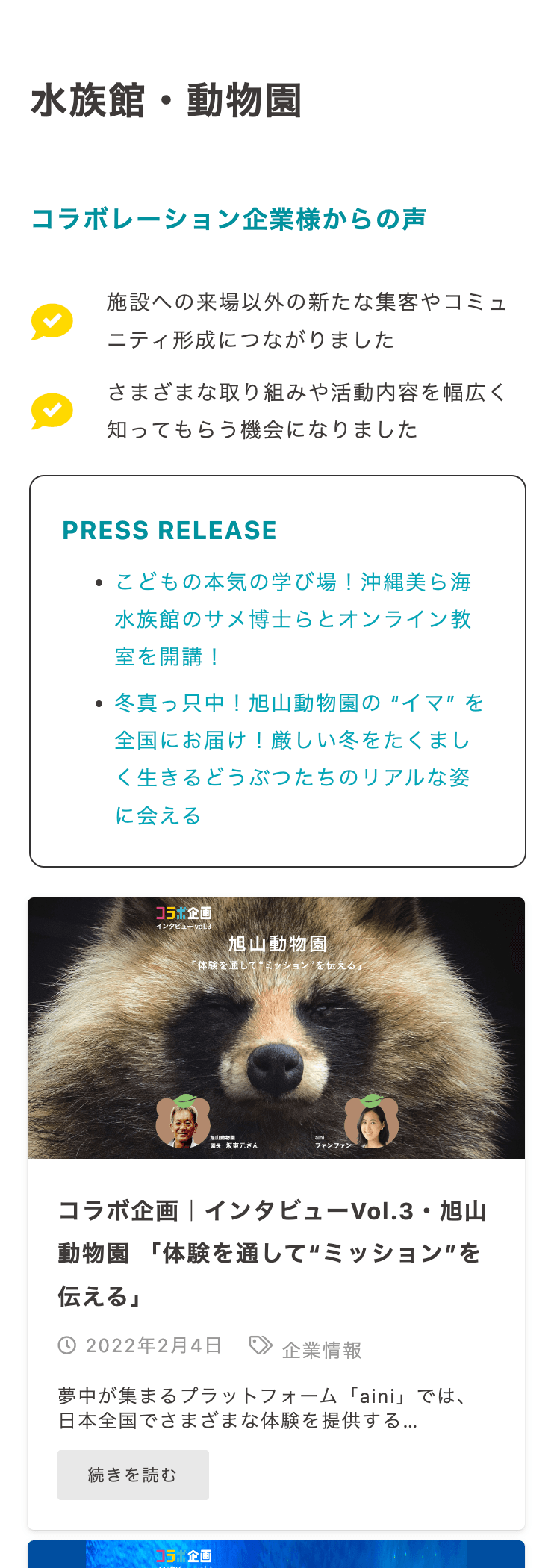 - このページを活用しながらサービス導入事例と実際の成果事例を伝えられるよう、各企業担当者のインタビュー記事をまとめたアーカイブページを制作しました。