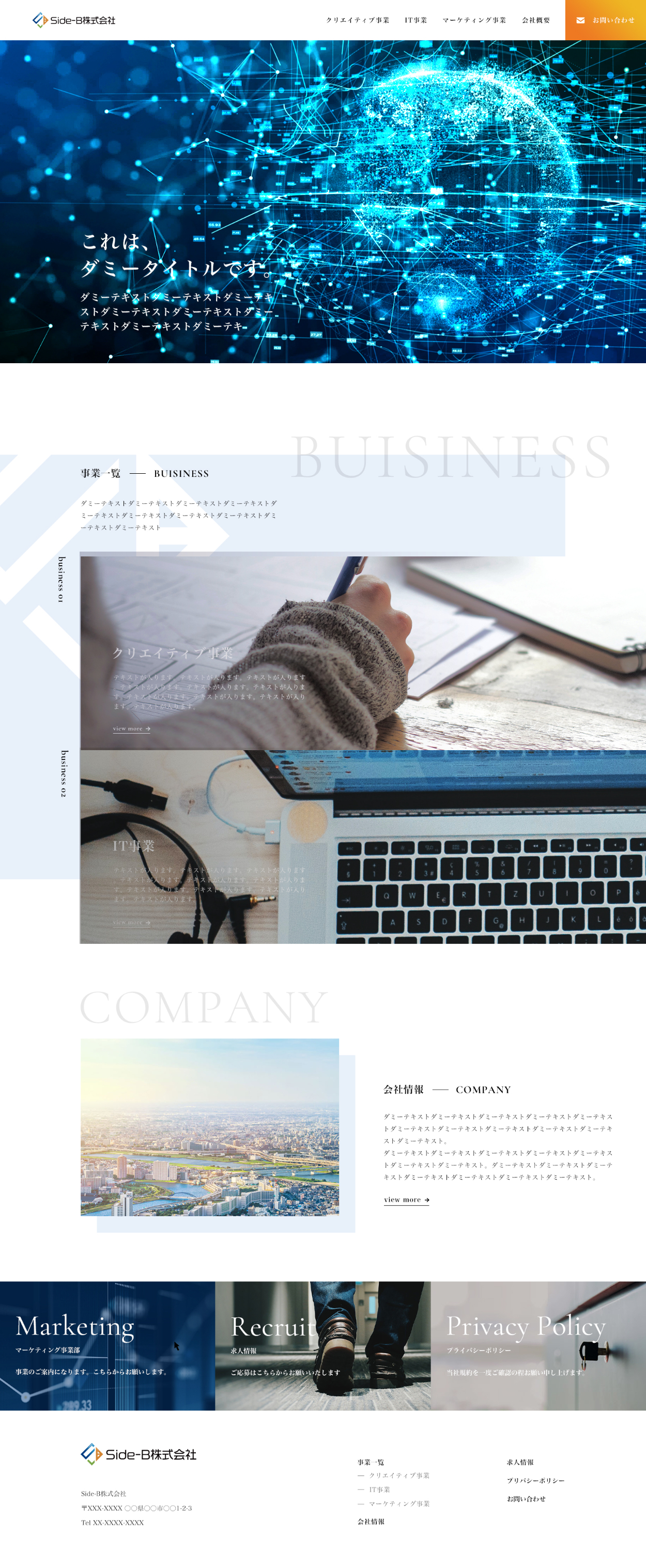 今回、IT系の会社のコーポレートサイトのTOPページのウェブデザイン。