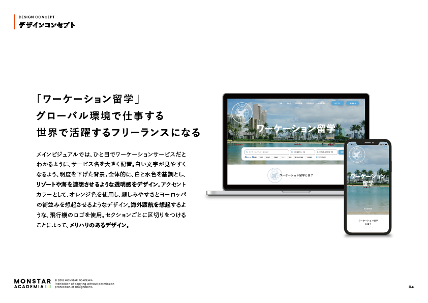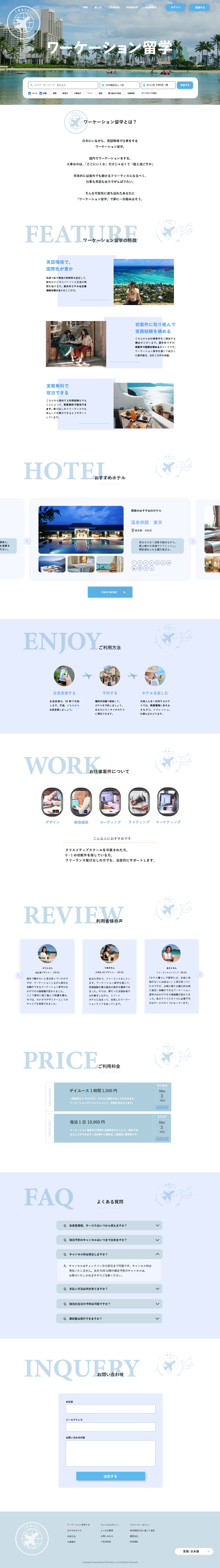 【制作課題】ワーケーションサービスのホームページ うめか デザイナー&マーケター OVERVIEW 架空会社のホームページを制作しました。制作時間:20時間|制作日:3月4日 YEAR 2023 ◇企画内容◇完成バナー