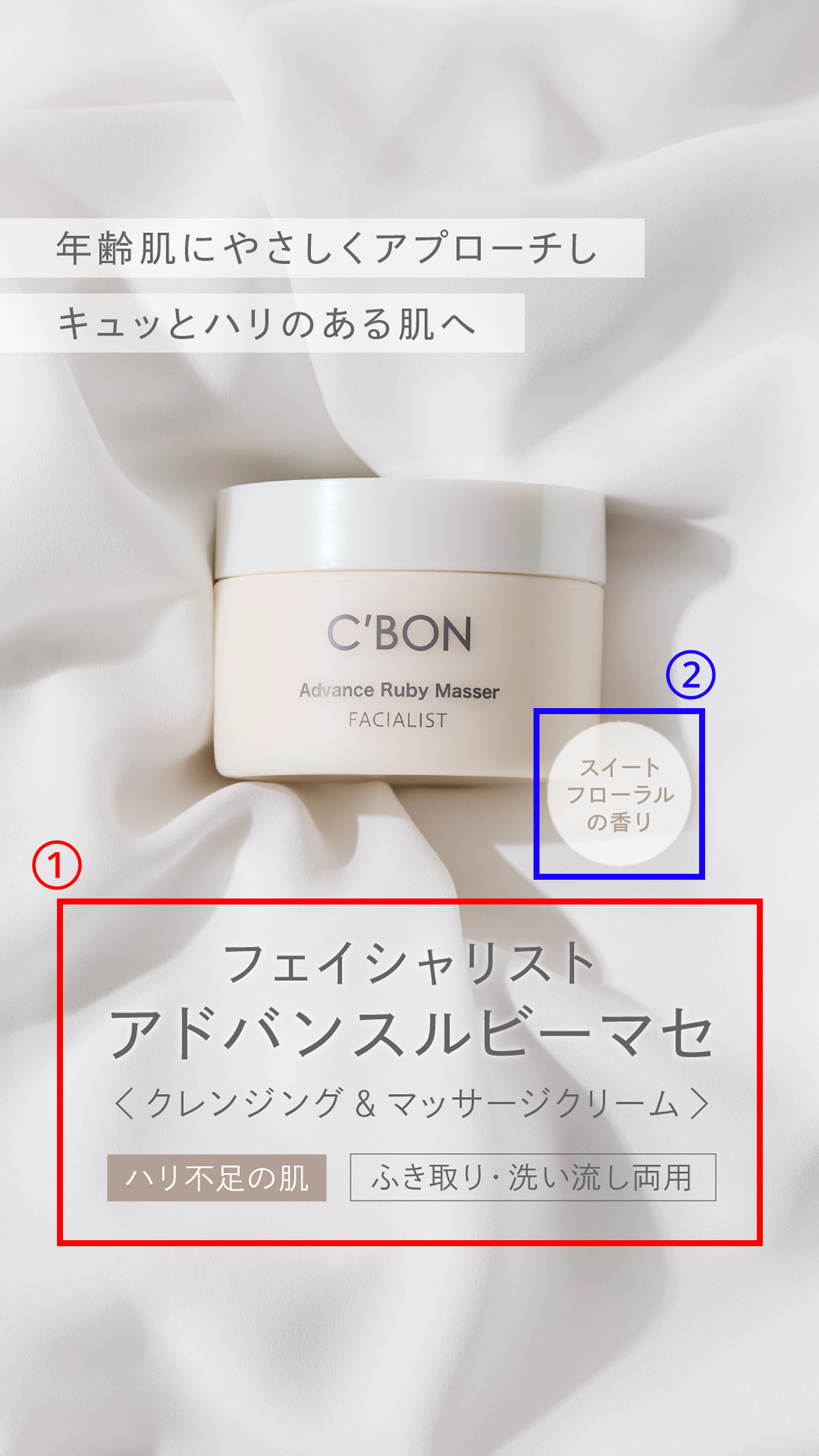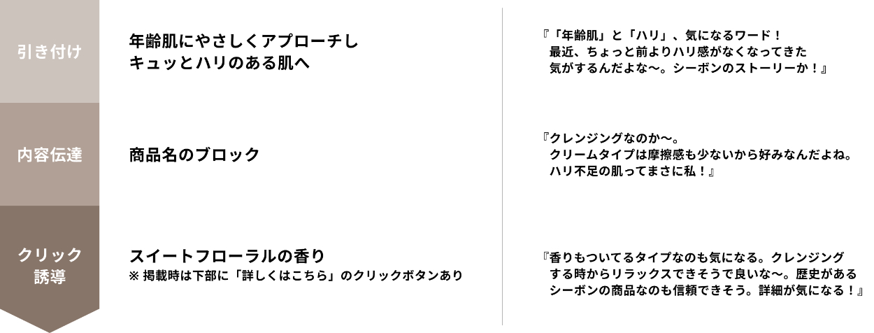 丁寧なスキンケアを好むターゲット層を意識して、商品の香りを追記しました。これにより、商品の魅力の1つであるリラックス効果が伝わること、また、フェイシャリストシリーズの他商品との違いがより分かりやすくなることを狙っています。