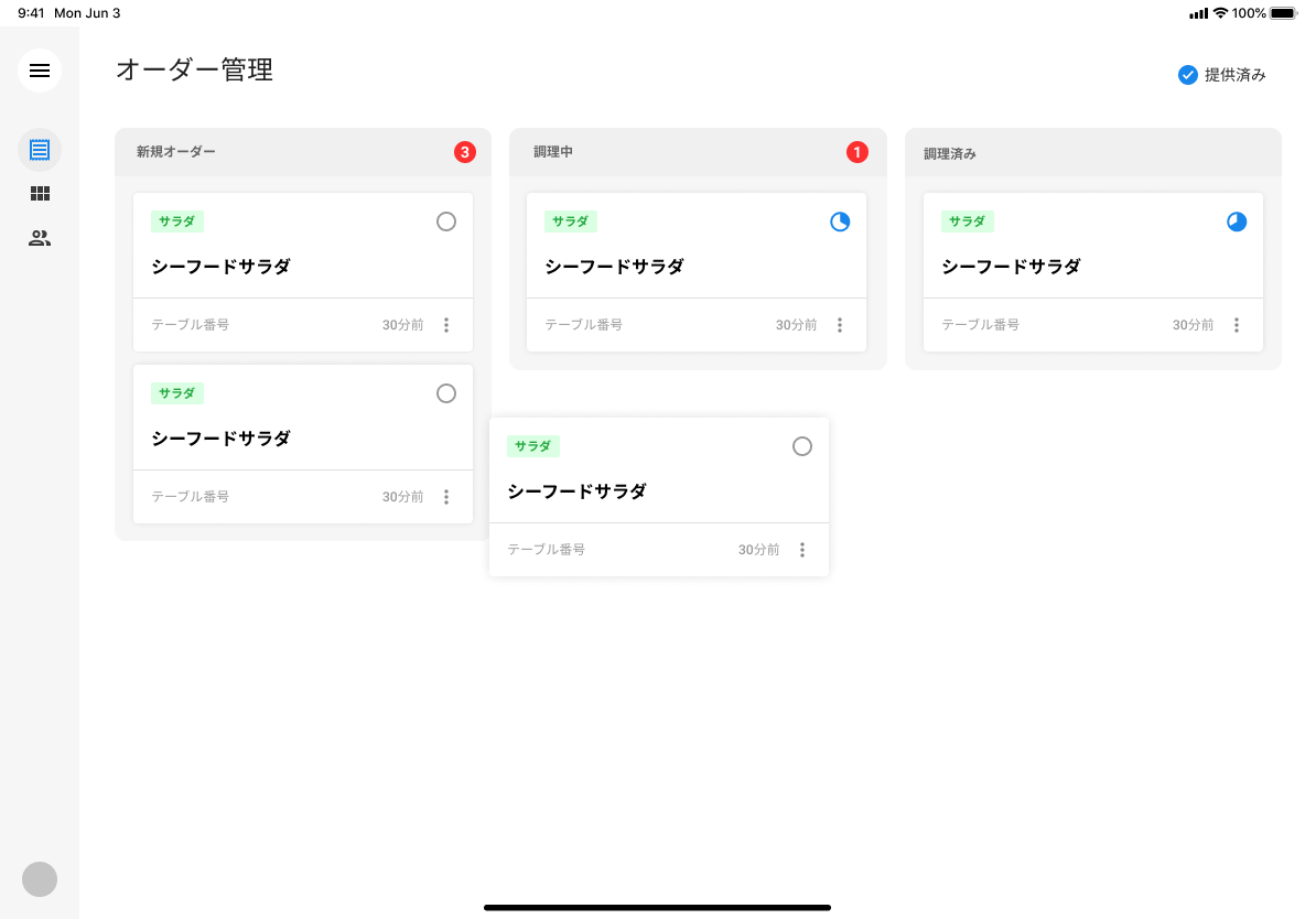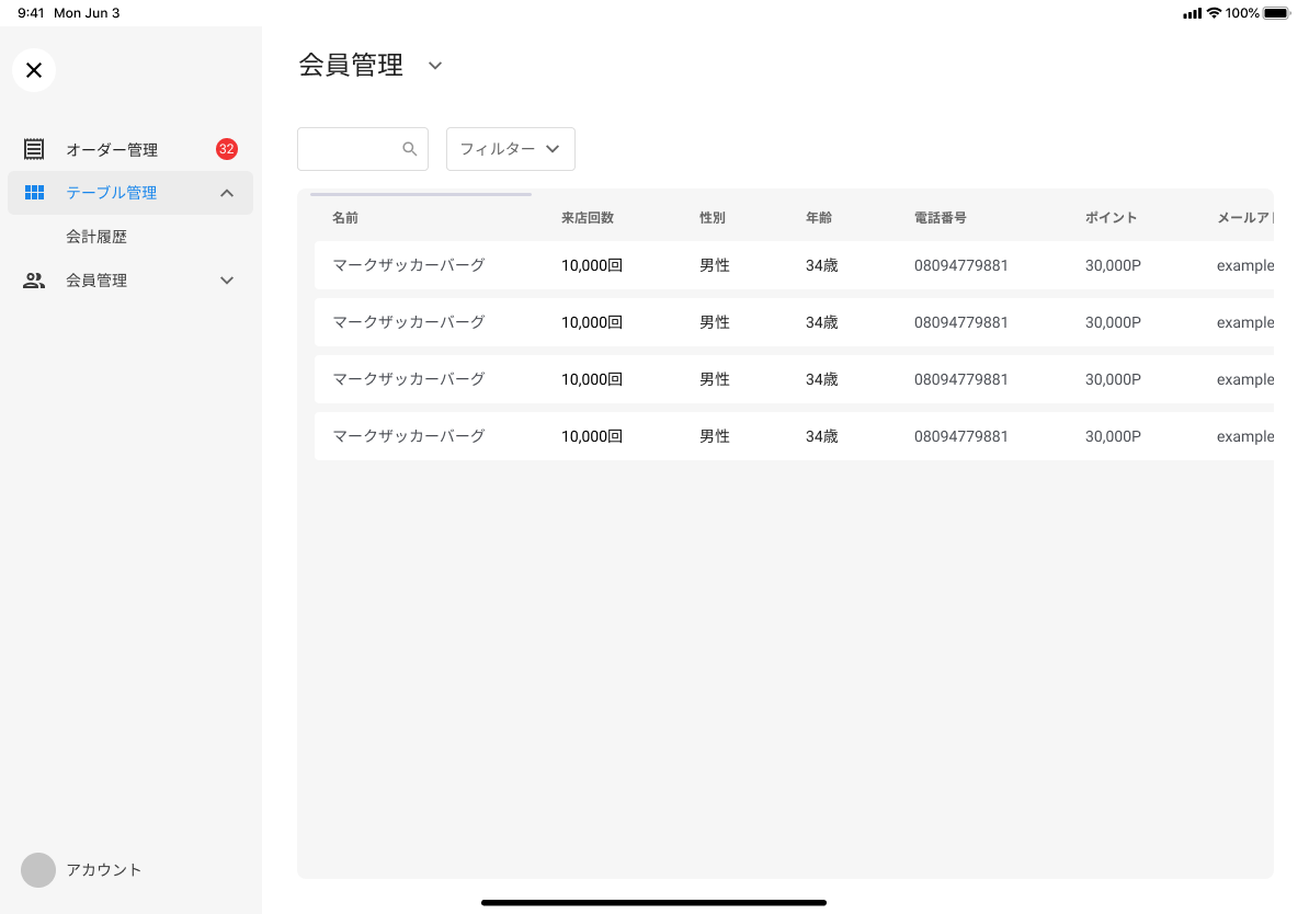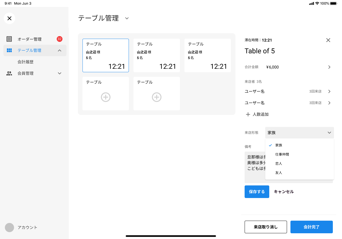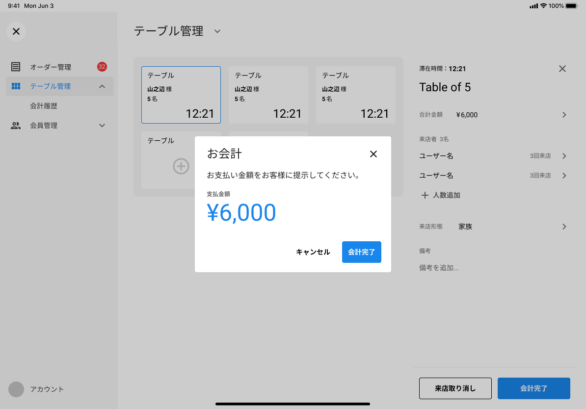 eatpon 店舗側オーダー管理システム いけうち UXUI designer OVERVIEW モバイルオーダーからの注文や顧客を管理するシステム YEAR 2020 他社のモバイルオーダ管理システムや顧客管理システムを参考にMVPのデザインUIを作成した。