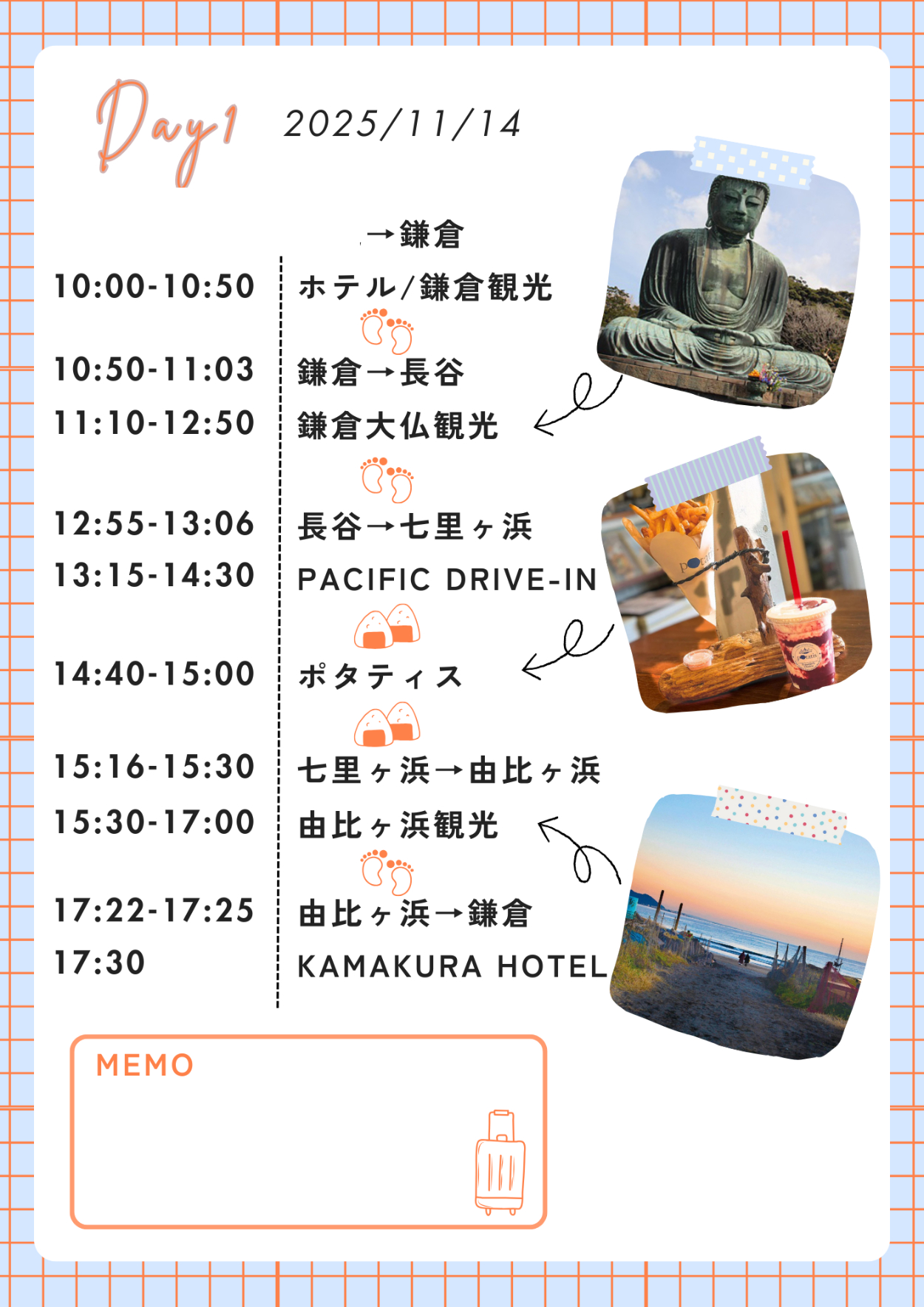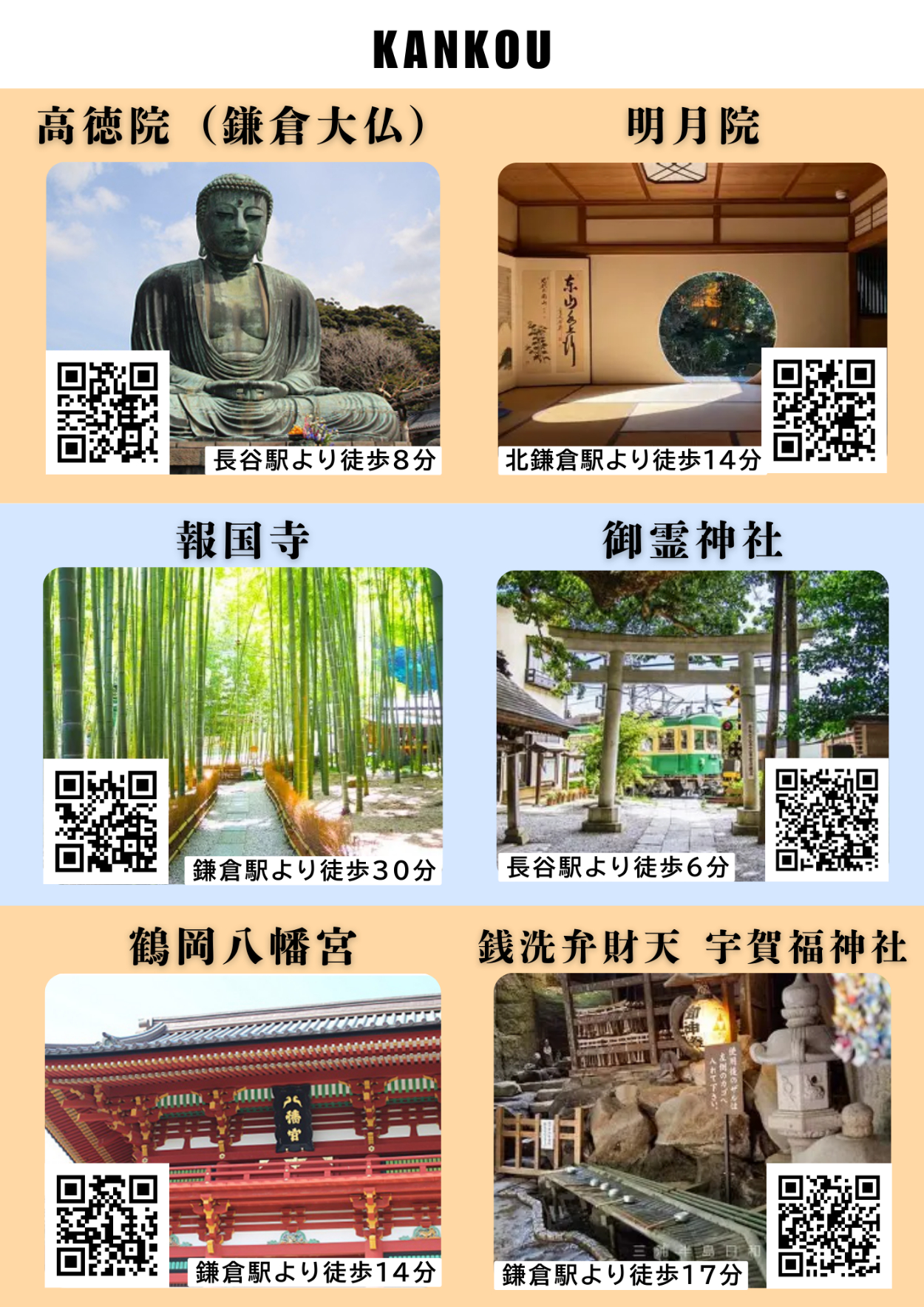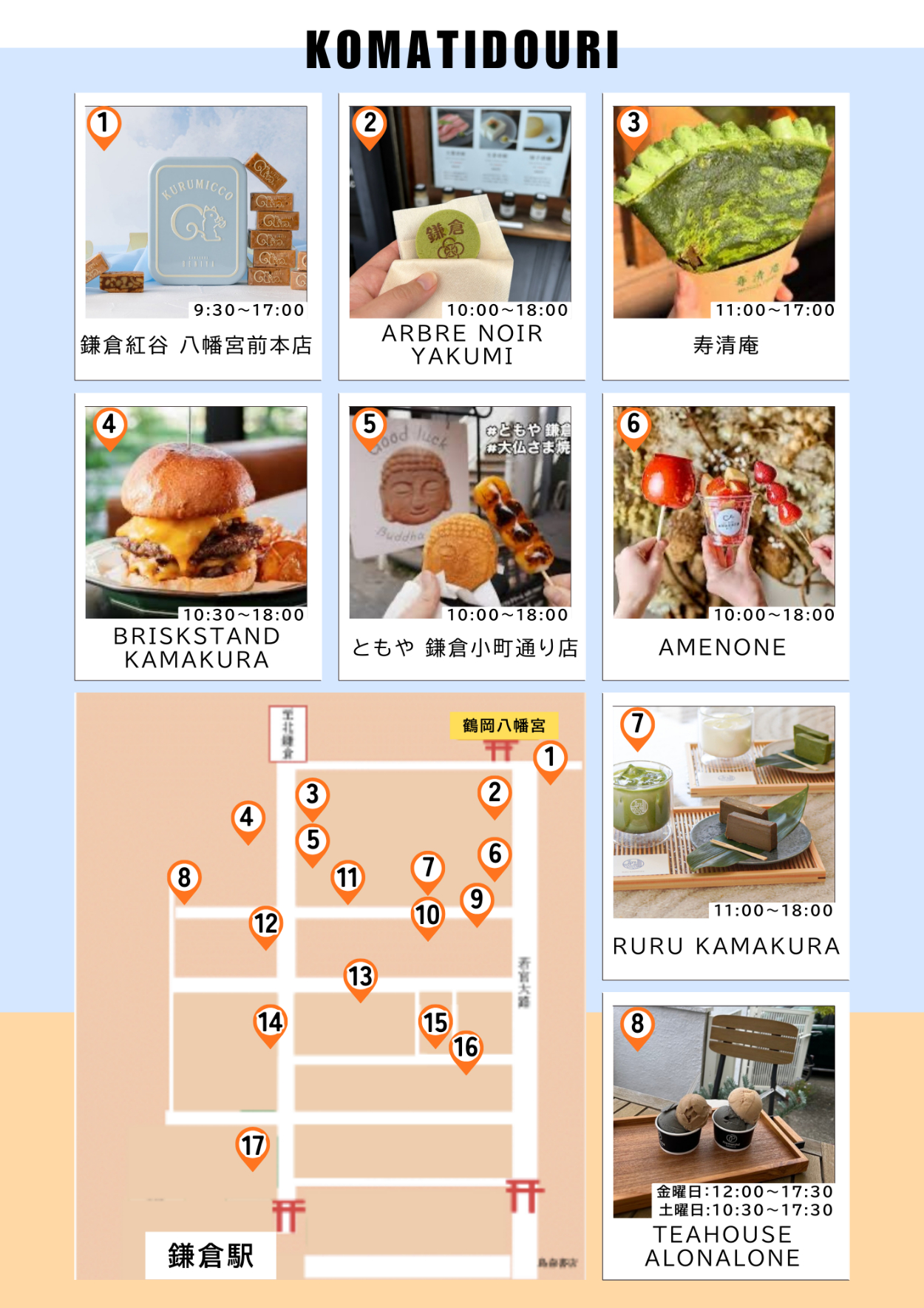 オリジナル鎌倉パンフレット MINAMO│15期クリエ・広報サポ隊 友達と鎌倉旅行へ行った際に作成したオリジナルパンフレットです。【目的】・事前に行きたい場所として保存していたお店を、視覚的に分かりやすくまとめたい・旅行へいった思い出として、形に残しておきたい