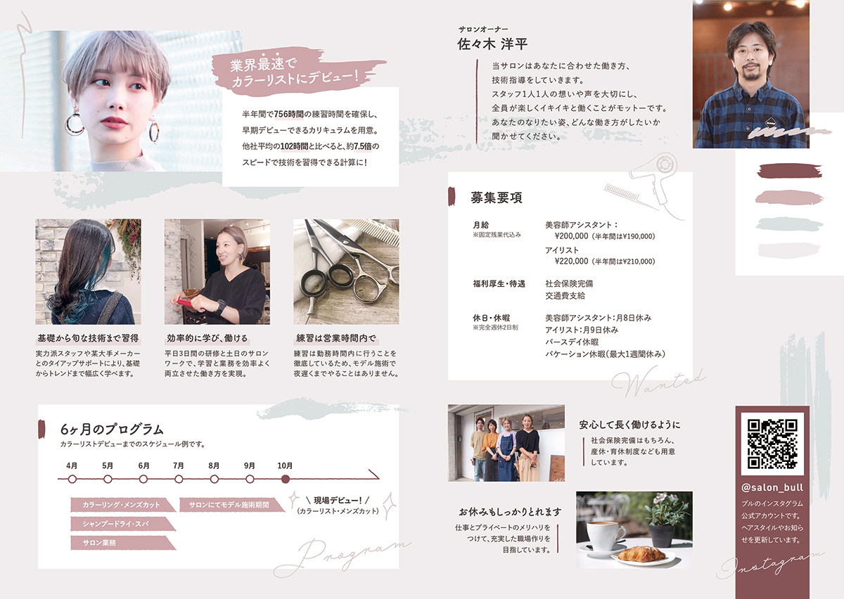 美容室Bull様 求人パンフレット2022(二つ折り)