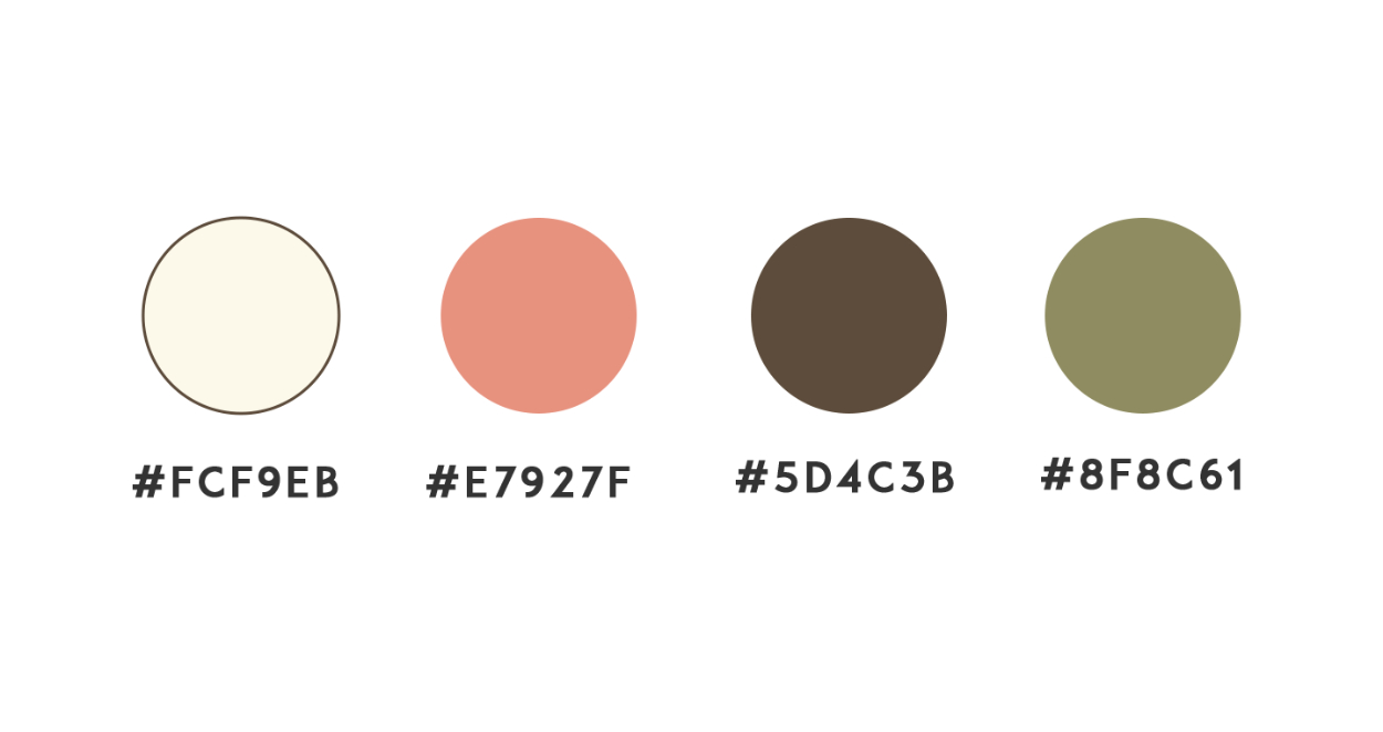 ・馴染みのあり柔らかな印象を与えるミルク色をベースカラー、コーヒー感じのある茶色をメインカラー、安心感や自然の印象を与える緑や優しい印象を与えるピンクをコンセントカラーに取り入れました。