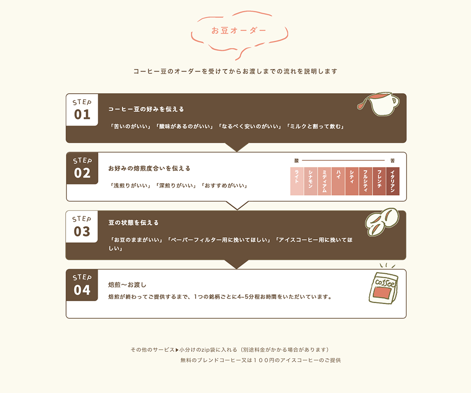 - オーダーを受けてから焙煎するため新鮮
