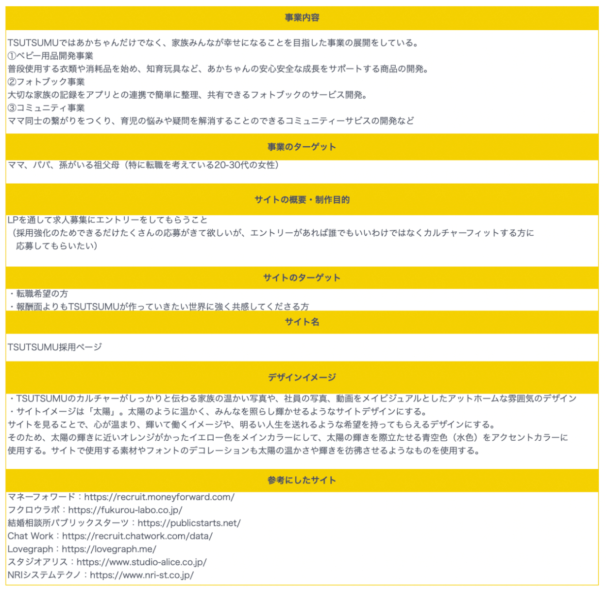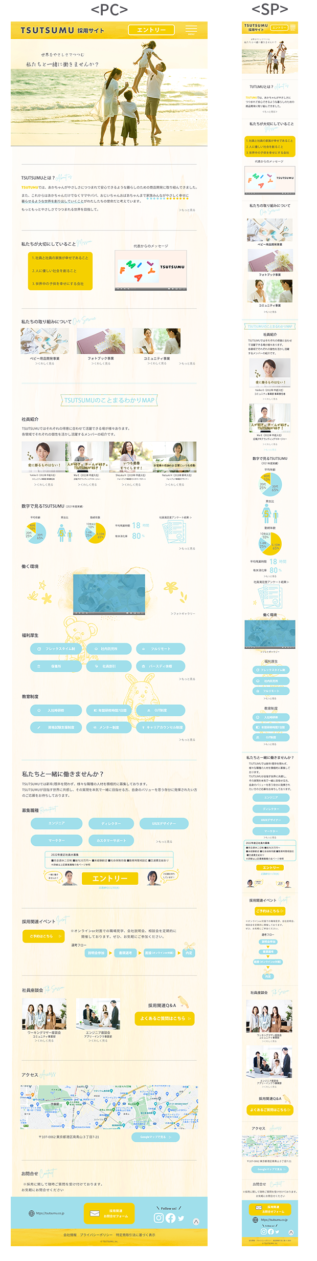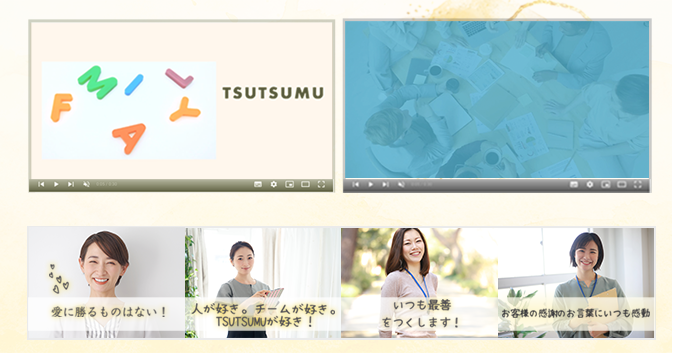 そのため、TSUTSUMUが大切にしている「家族」をテーマとした写真や、社員の写真、会社の雰囲気が伝わる動画を盛り込んだ。
