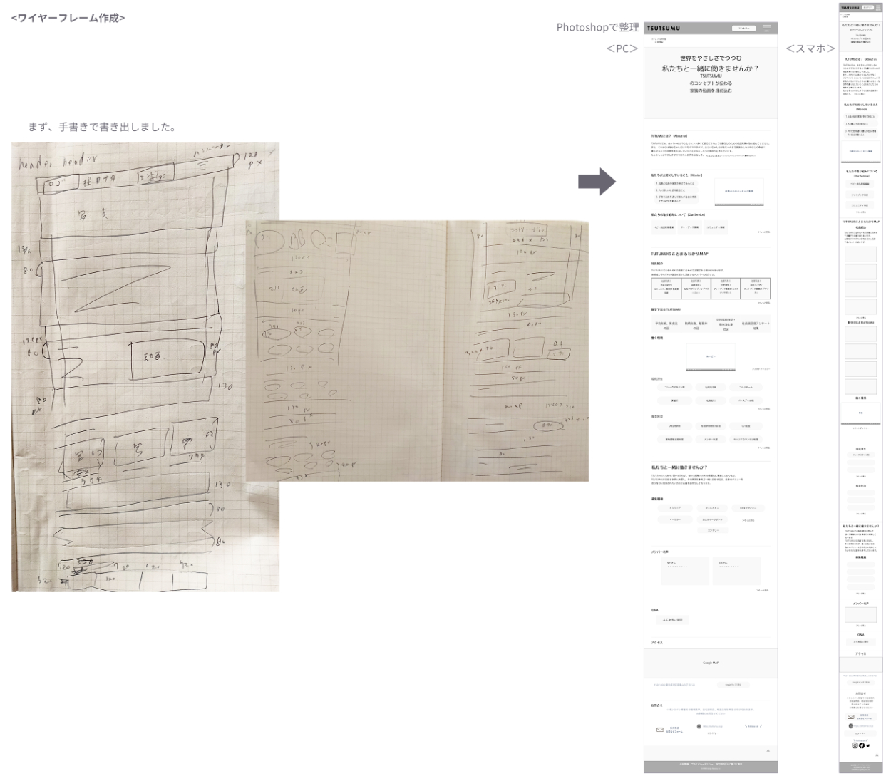 ●依頼書にあった「カルチャーフィットする方に応募してもらいたい」から、TSUTSUMUの良さ、カルチャーが多く伝わるサイトデザインを心がけた。