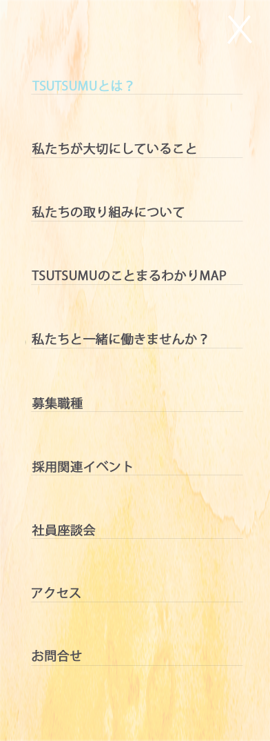 ●TSUTSUMUのカルチャーが伝わるサイト、見る人の心が温まりこの会社で働きたいと思ってもらえるような「太陽」のようなサイト