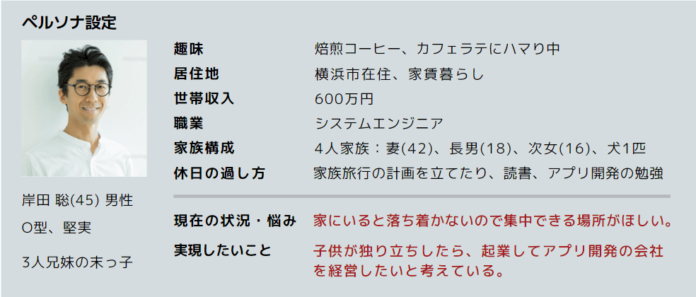 学生~社会人まで幅広い。年齢層によって商品ニーズは異なる。店舗のある横浜の駅周辺にはセカンドウェーブ、サードウェーブのカフェが点在しており、会社、自宅に次いで第三のスペースとして活用するユーザーが多い。近年では、コロナ禍の影響もあり、2021年1月のコーワキングスペース利用者数は、打ち合わせや副業を含めると全体の8割(※)を超えており、訴求店舗の貸し切り事業にもアプローチできそう。